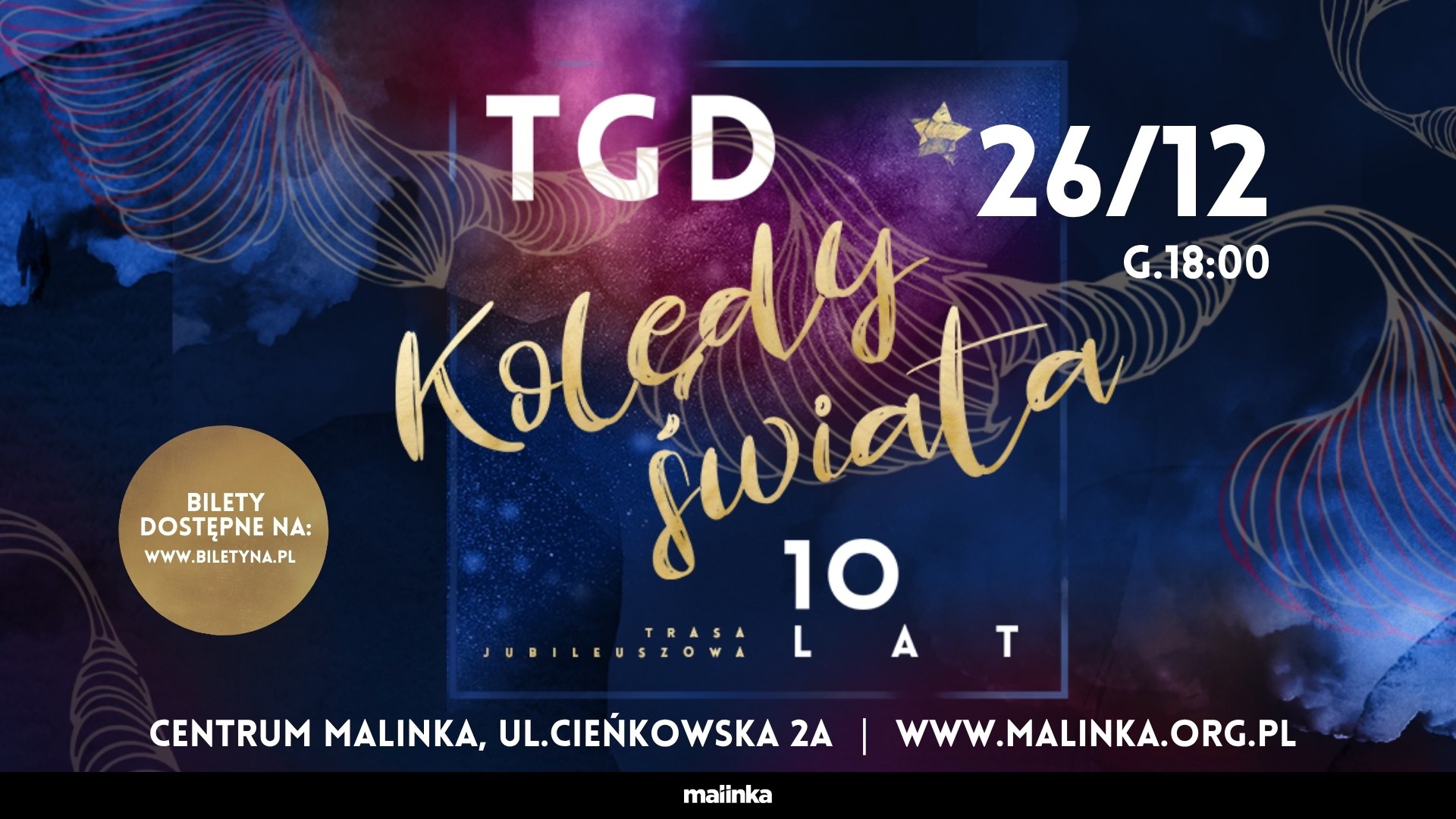 Koncert odbędzie się 26 grudnia 2025 w Centrum Malinka o godz. 18.00.