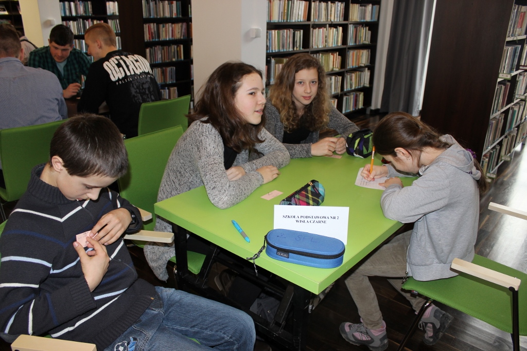 10 marca w gościnnych progach Miejskiej Biblioteki Publicznej im. J. Śniegonia rozegrały się dwa kolejne etapy konkursu. W drużynowym swoją wiedzą o baśniach i legendach Beskidu Śląskiego popisywały się czteroosobowe reprezentacje wiślańskich szkół. W królestwie książek ożyli bohaterowie książek Bogumiła Hoffa, Emanuela Grima, Gustawa Morcinka, Józefa Ondrusza, takie jak legendarny Imko Wisełka, Ondraszek, Kuba Szałaśnik, bandurki i nocnice, Borana, Białka, Czarnocha, Czantor, trzej bracia, którzy założyli Cieszyn, śpiący rycerze w Czantorii i wiele innych. Rywalizując w różnych konkurencjach nalepszą wśród szkół podstawowych okazała się drużyna ZSP 1 Wisła Głębce w składzie: Joel Kojma, Mateusz Skiba, Jakub Wałach i Kacper Szeremeta pod kierunkiem Renaty Brody. Dalsze miejsca zajęły w kolejności drużyny: ZSP 2 Wisła Malinka, Szkoły Podstawowej nr 5 Wisła Jawornik, Szkoły Podstawowej nr 2 Wisła Czarne oraz Szkoły Podstawowej nr 1 Wisła Centrum. Wśród szkół ponadpodstawowych zdecydowanie wygrała drużyna ZSGH przygotowana przez Henryka Podżorskiego w składzie: Damian Badura, Katarzyna Bonczek, Karol Procner i Michalina Pilch. Drugie i trzecie miejsce przypadło drużynie z wiślańskiego Gimnazjum nr 1 i Liceum Ogólnokształcącego im. P. Stalmacha. W sumie o prymat wiedzy o Wiśle zmagało się 33 zawodników. Dzięki przygotowaniu ich przez nauczycieli, którzy nie we wszystkich placówkach mają możliwość przeprowadzenia zajęć z edukacji regionalnej, dzieci wykazały się dużą wiedzą na temat naszej małej ojczyzny. Dziękujemy nauczycielom, którzy przygotowali uczniów do konkursu: Beacie Mendrek z LO, Henrykowi Podżorskiemu z ZSGH, Romanowi Czechowi z Gimnazjum, Anicie Binek z SP 1, Elżbiecie Szajtauer z SP 2, Renacie Brodzie z ZSP 1, Klaudii Szewczyk z ZSP 2 i Bronisławowi Masnemu z SP 5.