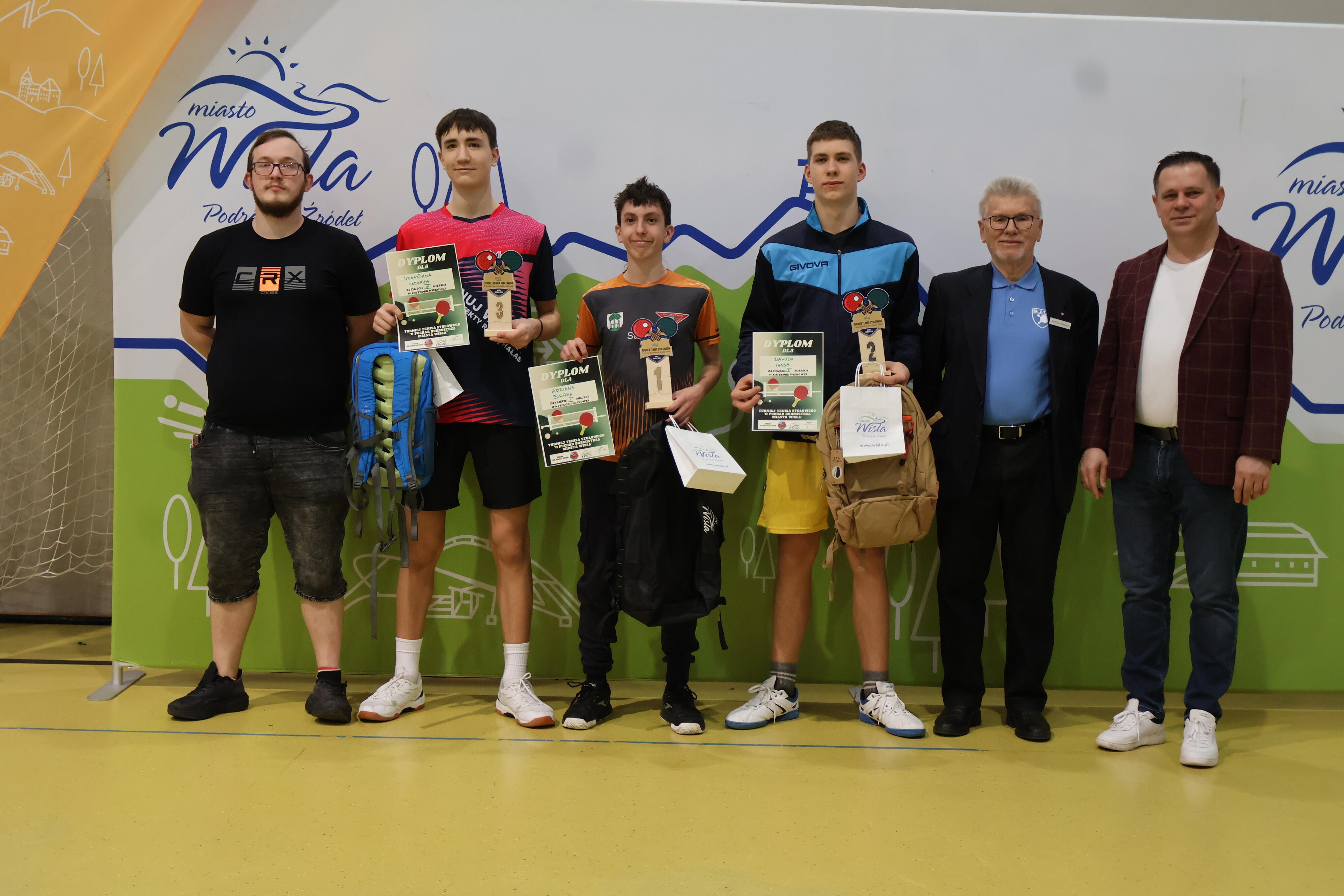 Słowa uznania kierujemy do zawodników sekcji tenisa stołowego klubu Wiślańska Jedynka, która jak co roku czynnie włączyli się we współorganizację turnieju oraz zadbali o przygotowanie sali, transport i ustawianie stołów, dzięki czemu rozgrywki mogły przebiegać sprawnie i w komfortowych warunkach.