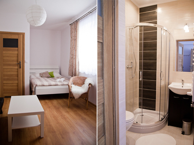 Oferujemy trzy przestronne i gustownie urządzone dwu- i trzyosobowe pokoje gościnne. Każdy pokój wyposażony jest w łazienkę z prysznicem, telewizor z telewizją satelitarną, bezpłatne łącze internetowe, wygodne fotele, stolik kawowy oraz ręczniki dla gości. Do dyspozycji naszych gości oddajemy również w pełni wyposażoną kuchnię z jadalnią oraz gorącą kawę lub herbatkę gratis :)