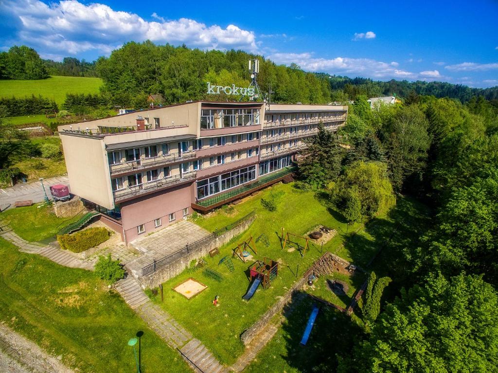 Krokus jest całorocznym obiektem hotelarskim, położony na zacisznym, południowym zboczu Partecznika na wysokości 529 m n.p.m.  Z okien naszych pokoi roztacza się przepiękny widok na Góry Beskidu Śląskiego- Czantoria- Soszów Wielki-Stożek oraz na miasto Wisła.
