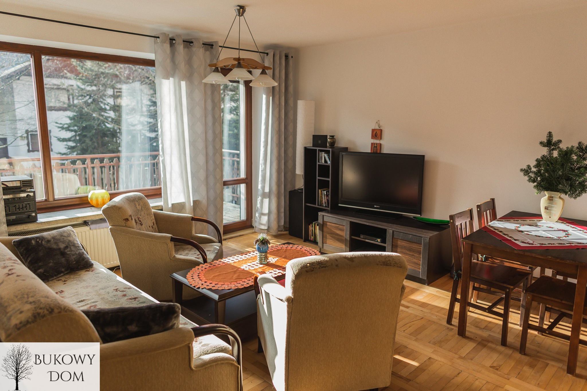Są to 3 sypialnie - dwie z nich z dwoma osobnymi łóżkami, jedna sypialnia z łóżkiem małżeńskim. Oprócz tego salon również z możliwością nocowania dwóch osób na komplecie wypoczynkowym. Do dyspozycji również w pełni wyposażona kuchnia, świeżo wyremontowana łazienka, ubikacja, ogród i garaż, również dla gości. Ogrodzona posesja zaraz przy głównej drodze. Nieopodal stacja narciarska Nowa Osada. Obok przystanek autobusowy w stronę centrum, sklep spożywczy i restauracja Górolsko Izba. Nie oferujemy wyżywienia.