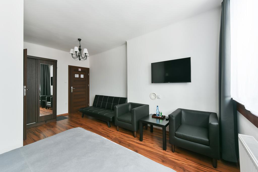3 pokoje trzyosobowe (19-25 m2) z łóżkiem małżeńskim, rozkładaną sofą, łazienką w cenie 295 zł za dobę