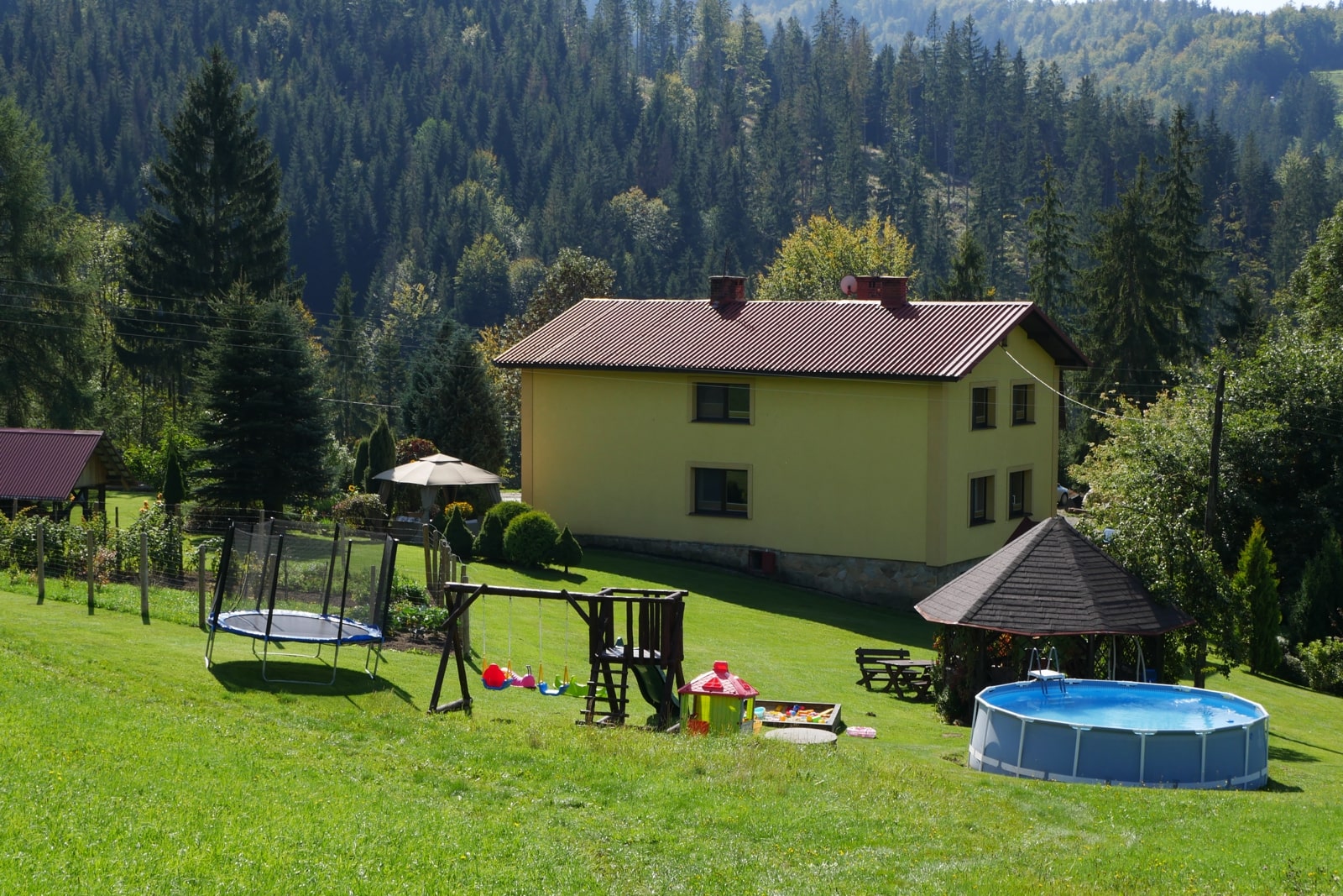 Pokoje u Marioli mieszczą się w doskonałej lokalizacji w Dolinie Białej Wisełki na ul. Połomskiej 4. Położone są w cichej i spokojnej okolicy, z dala od centrum i zgiełku miasta, w malowniczym miejscu przy hali pod samym lasem i otoczone są dużym ogrodem i olbrzymią łąką. Można tu nacieszyć się świeżym powietrzem, przyjemną ciszą i pięknem otaczającej nas natury.