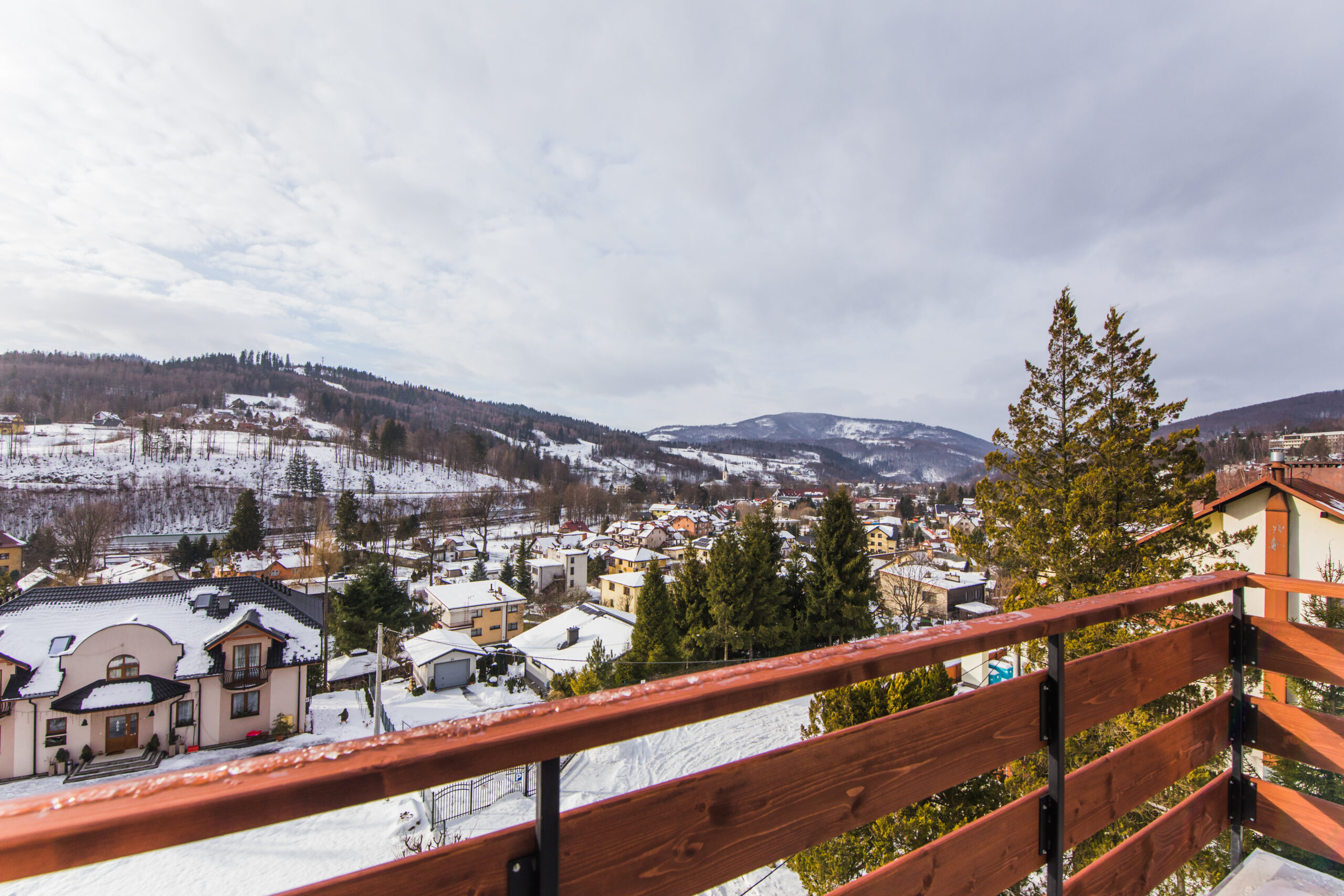 Położenie na delikatnym wzniesieniu sprawia, że z balkonów rozpościera się wspaniały widok na góry oraz panoramę miasta.