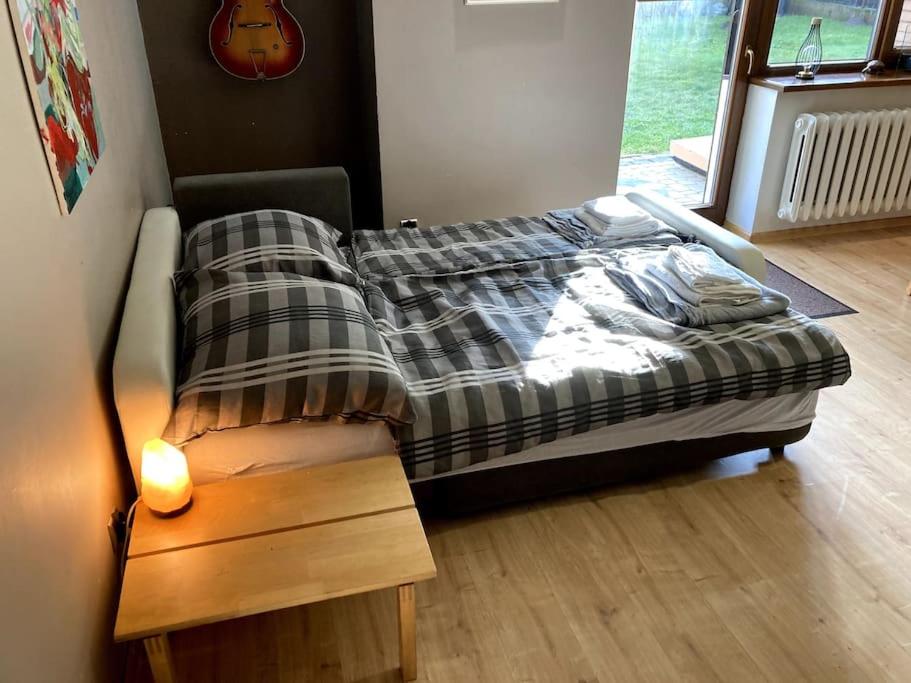 Ten apartament obejmuje 1 sypialnię, salon oraz w pełni wyposażoną kuchnię z lodówką i piekarnikiem. Ręczniki i pościel są zapewnione w apartamencie.