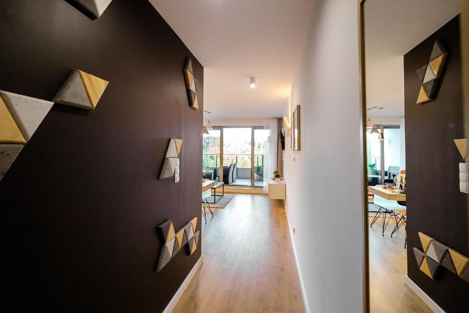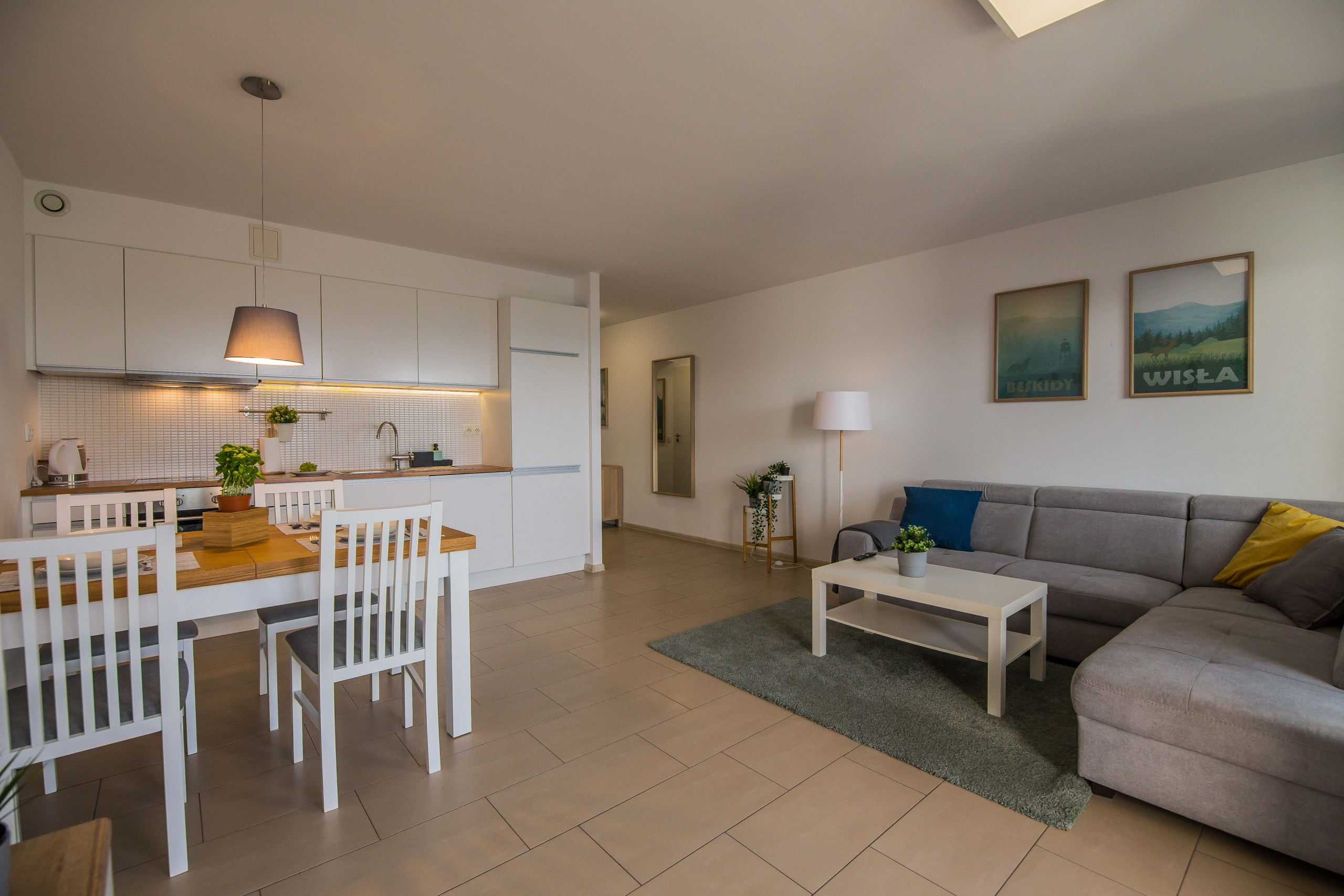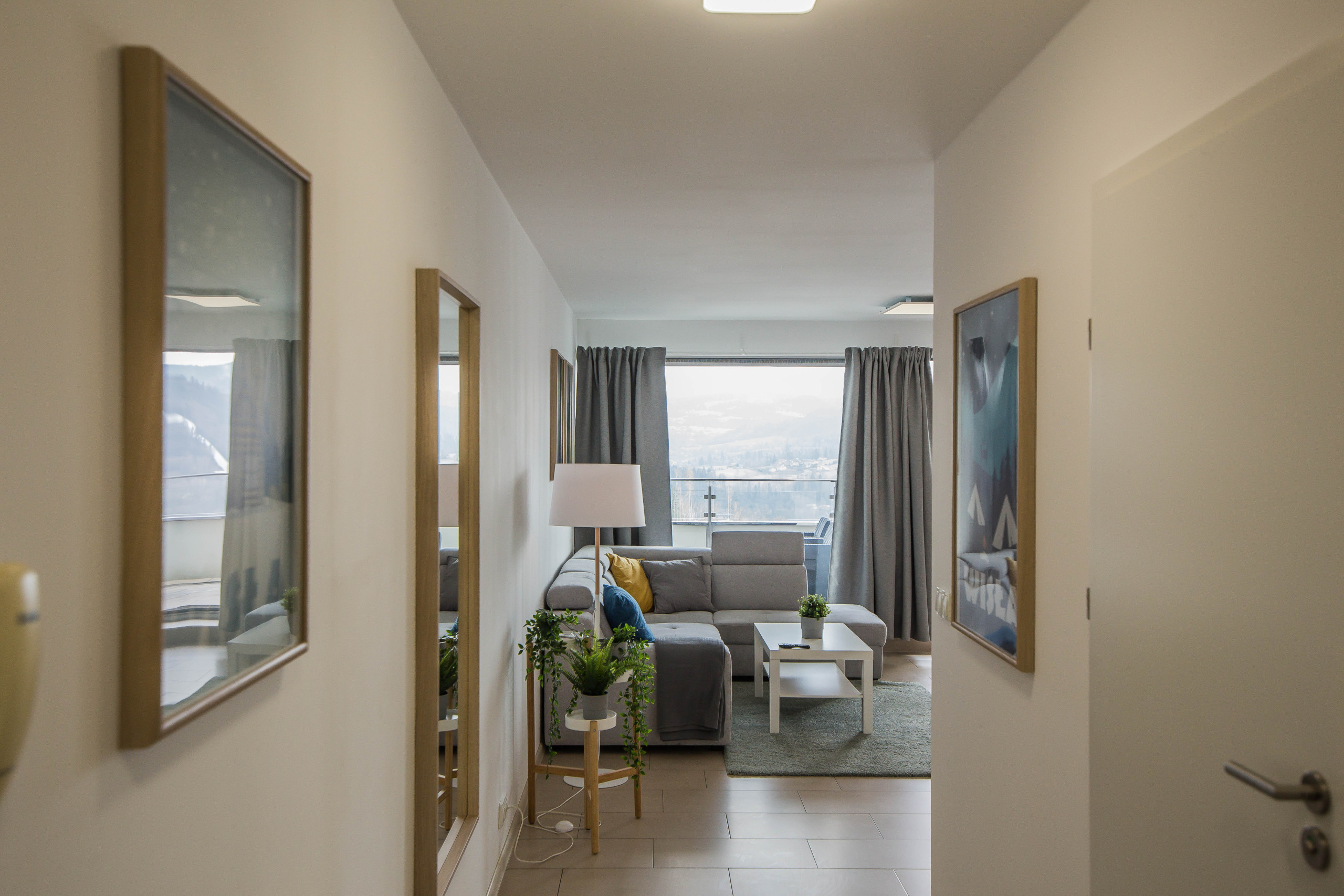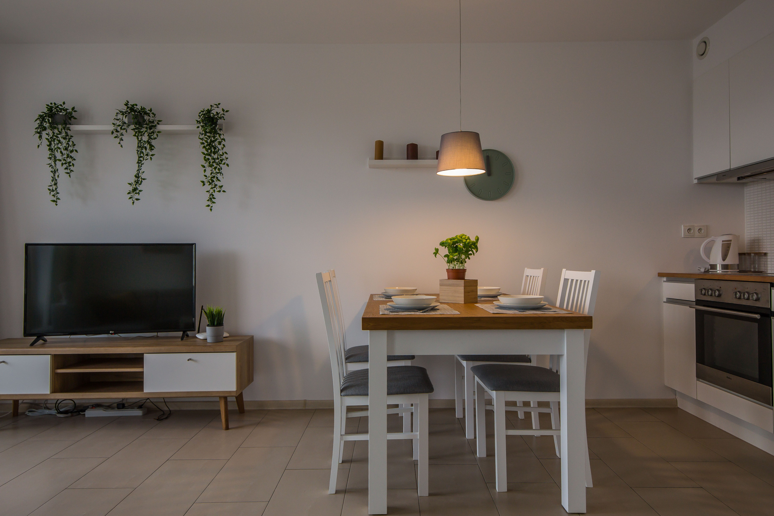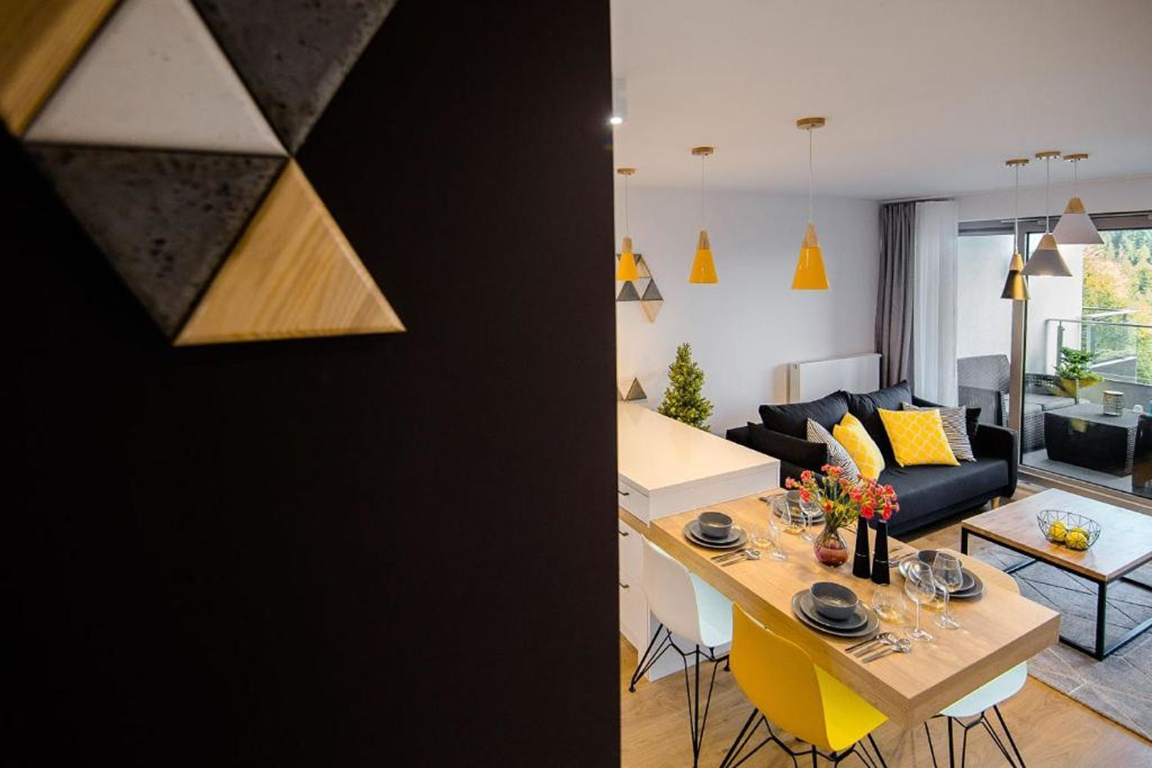 Ten nowoczesny apartament może ugościć do 4 osób - jest to idealny wybór na rodzinny wyjazd lub dla grupy przyjaciół. Wysoce funkcjonalna przestrzeń oferuje salon z aneksem kuchennym, sypialnię oraz łazienkę. Część dzienna wyposażona w wygodną sofę oraz telewizor Smart TV stanowi doskonałe miejsce odpoczynku i relaksu. Do dyspozycji gości jest także przynależny do salonu balkon z meblami ogrodowymi, z którego rozciąga się piękny widok na miasto i góry – to idealne miejsce na łyk porannej kawy, czy odpoczynek po całym dniu zwiedzania. Sypialnia posiada wygodne łóżko małżeńskie i telewizor, aby móc się komfortowo zrelaksować. Znajduje się tu także biurko, dzięki czemu goście pracujący zdalnie będą mogli w komfortowy sposób zadbać o obowiązki służbowe, a w całym apartamencie jest dostęp do szybkiego, bezpłatnego Internetu Wifi. Szeroki wachlarz udogodnień oraz kompleksowe wyposażenie apartamentu w niezbędne akcesoria i sprzęty kuchenne, jak i łazienkowe gwarantuje komfort pobytu. Dla ułatwienia rozpoczęcia każdej wizyty zapewniono bezpłatny zestaw kosmetyków (mydło, szampon i żel pod prysznic), ręczniki oraz pościel. Na wyposażeniu mieszkania goście znajdą również pralkę, co z pewnością docenią rodziny z małymi dziećmi czy osoby planujące dłuższy pobyt. Na życzenie gości w apartamencie będzie czekało łóżeczko dla dziecka, krzesełko do karmienia, wanienka, czy nawet przewijak. Jasne wnętrze mieszkania jest funkcjonalnie zaprojektowane, wychodząc naprzeciw wszelkim potrzebom gości. Istnieje możliwość, aby zabrać na wyjazd swojego ulubionego pupila, gdyż obiekt akceptuje zwierzęta.