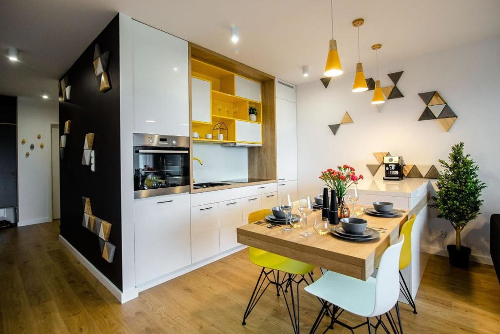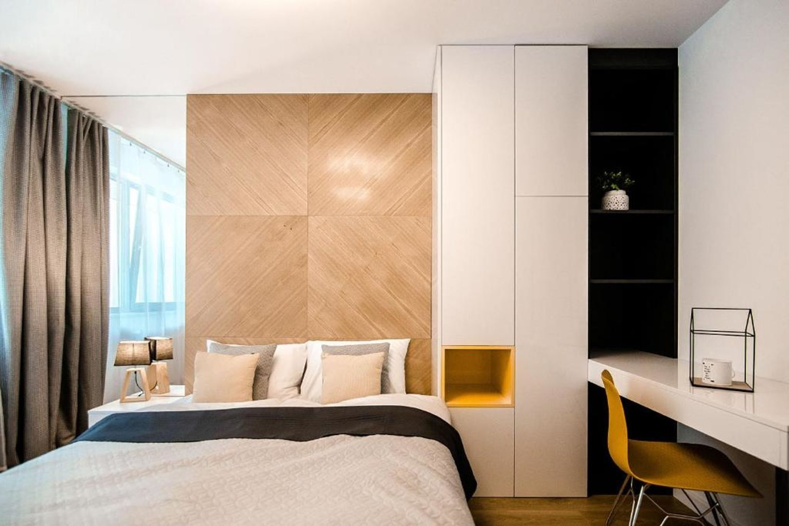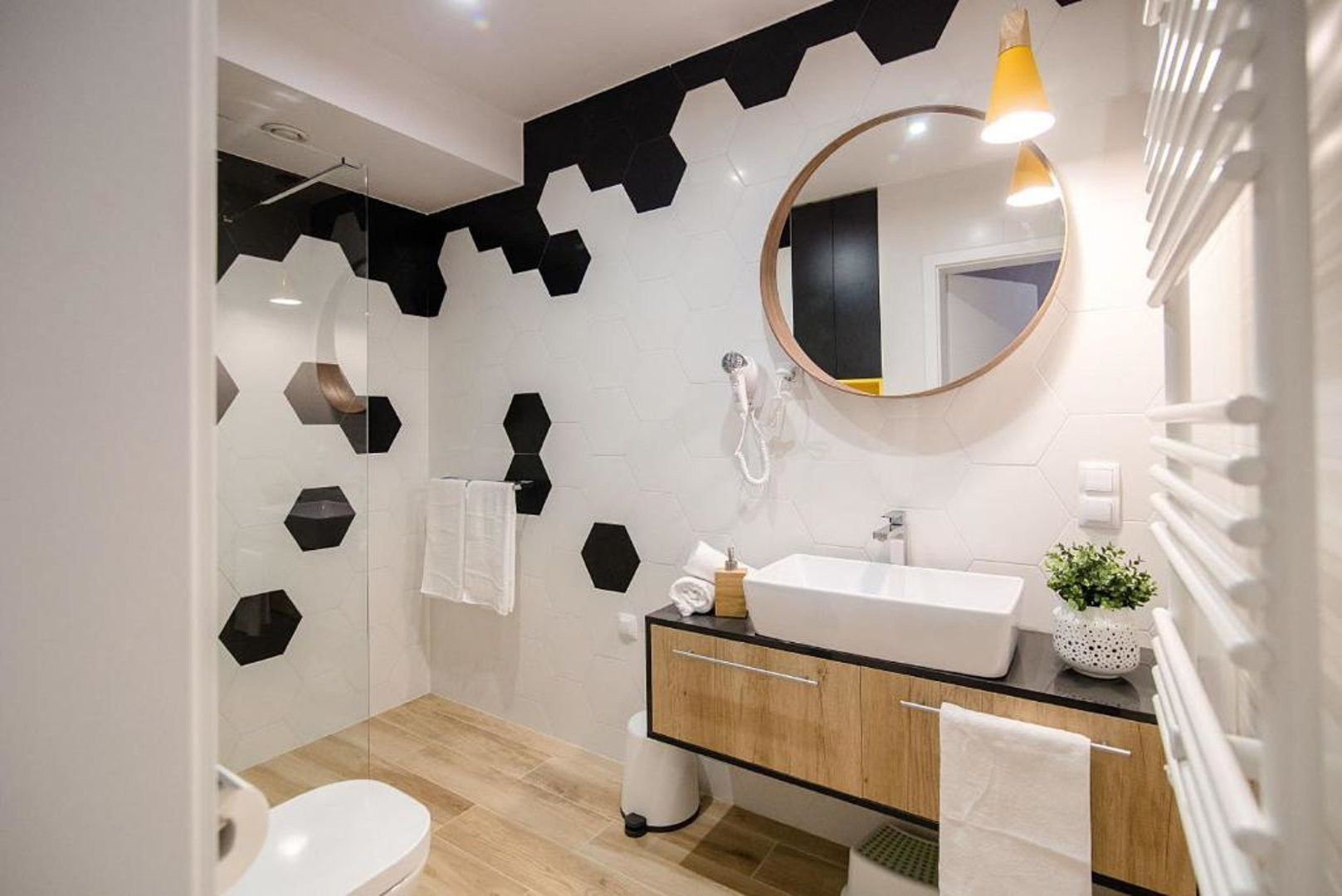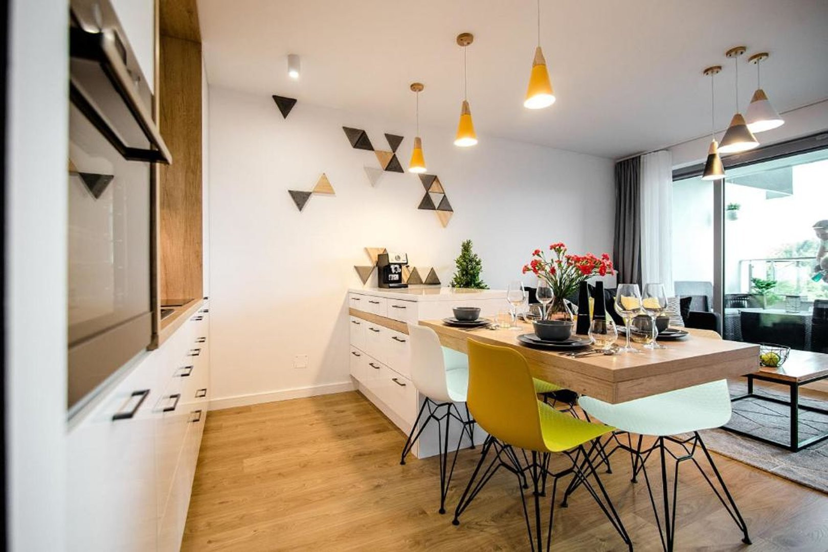 Ten nowoczesny apartament może ugościć do 4 osób - jest to idealny wybór na rodzinny wyjazd lub dla grupy przyjaciół. Wysoce funkcjonalna przestrzeń oferuje salon z aneksem kuchennym, sypialnię oraz łazienkę. Część dzienna wyposażona w wygodną sofę oraz telewizor Smart TV stanowi doskonałe miejsce odpoczynku i relaksu. Do dyspozycji gości jest także przynależny do salonu balkon z meblami ogrodowymi, z którego rozciąga się piękny widok na miasto i góry – to idealne miejsce na łyk porannej kawy, czy odpoczynek po całym dniu zwiedzania. Sypialnia posiada wygodne łóżko małżeńskie i telewizor, aby móc się komfortowo zrelaksować. Znajduje się tu także biurko, dzięki czemu goście pracujący zdalnie będą mogli w komfortowy sposób zadbać o obowiązki służbowe, a w całym apartamencie jest dostęp do szybkiego, bezpłatnego Internetu Wifi. Szeroki wachlarz udogodnień oraz kompleksowe wyposażenie apartamentu w niezbędne akcesoria i sprzęty kuchenne, jak i łazienkowe gwarantuje komfort pobytu. Dla ułatwienia rozpoczęcia każdej wizyty zapewniono bezpłatny zestaw kosmetyków (mydło, szampon i żel pod prysznic), ręczniki oraz pościel. Na wyposażeniu mieszkania goście znajdą również pralkę, co z pewnością docenią rodziny z małymi dziećmi czy osoby planujące dłuższy pobyt. Na życzenie gości w apartamencie będzie czekało łóżeczko dla dziecka, krzesełko do karmienia, wanienka, czy nawet przewijak. Jasne wnętrze mieszkania jest funkcjonalnie zaprojektowane, wychodząc naprzeciw wszelkim potrzebom gości. Istnieje możliwość, aby zabrać na wyjazd swojego ulubionego pupila, gdyż obiekt akceptuje zwierzęta.
