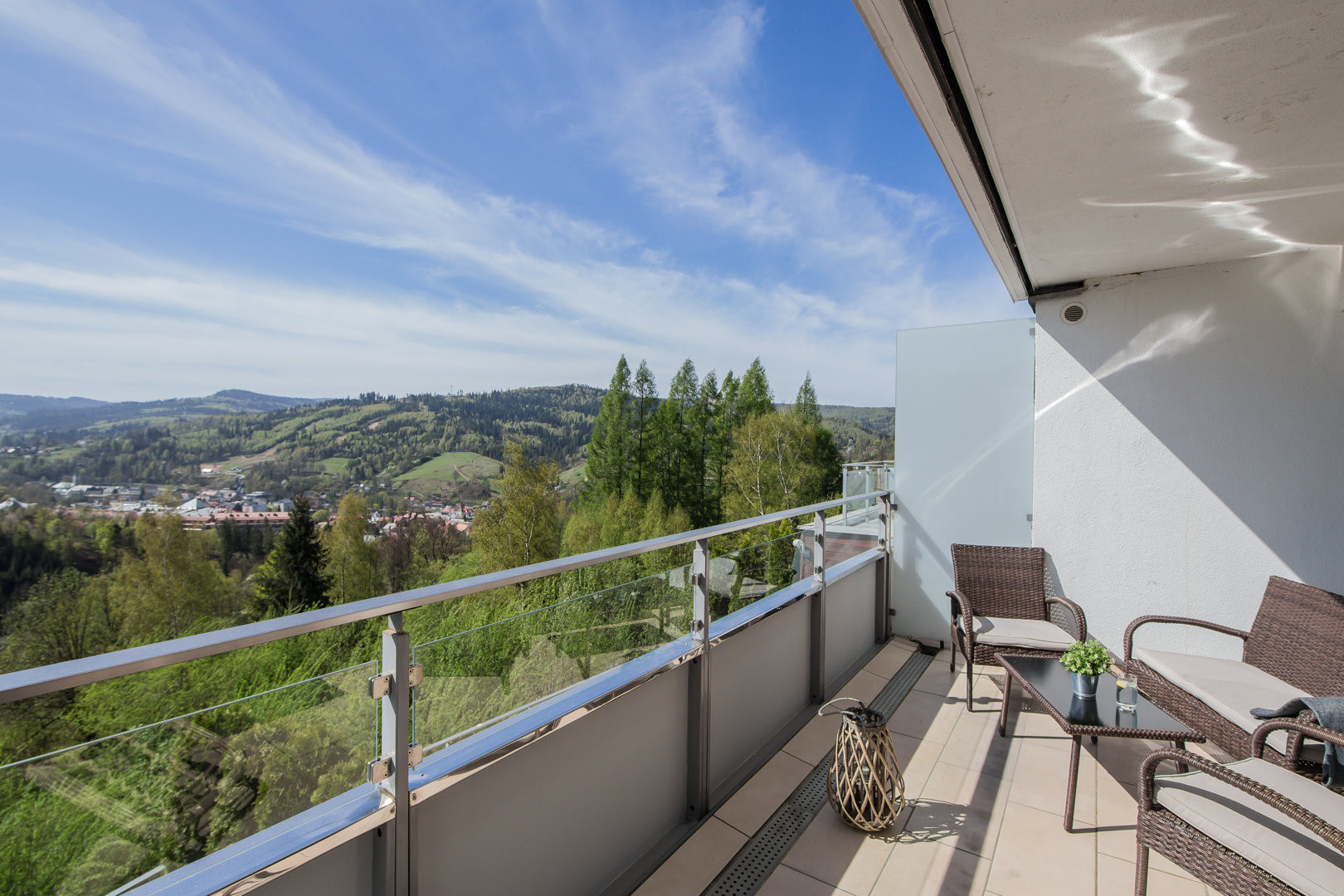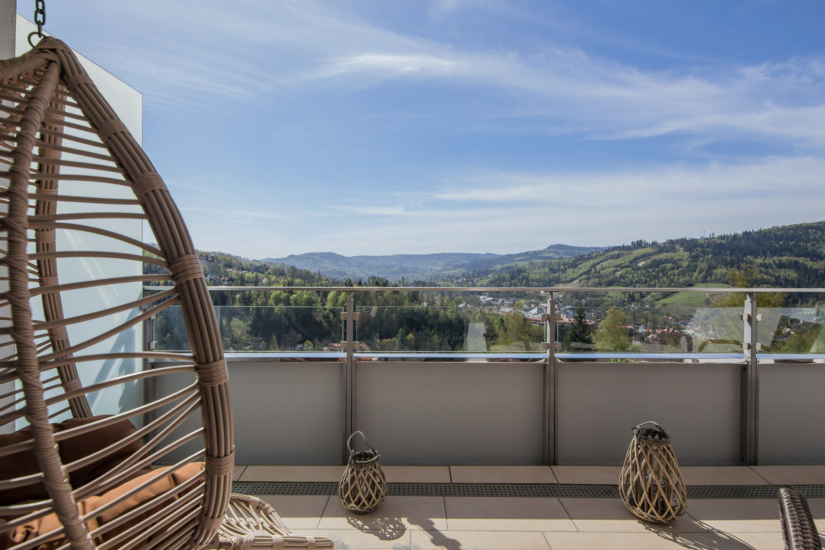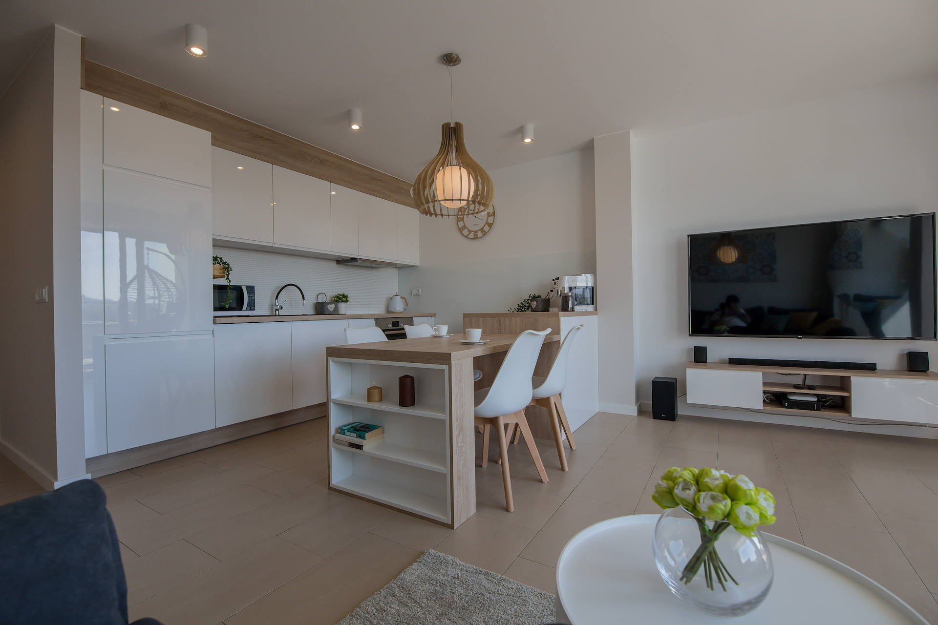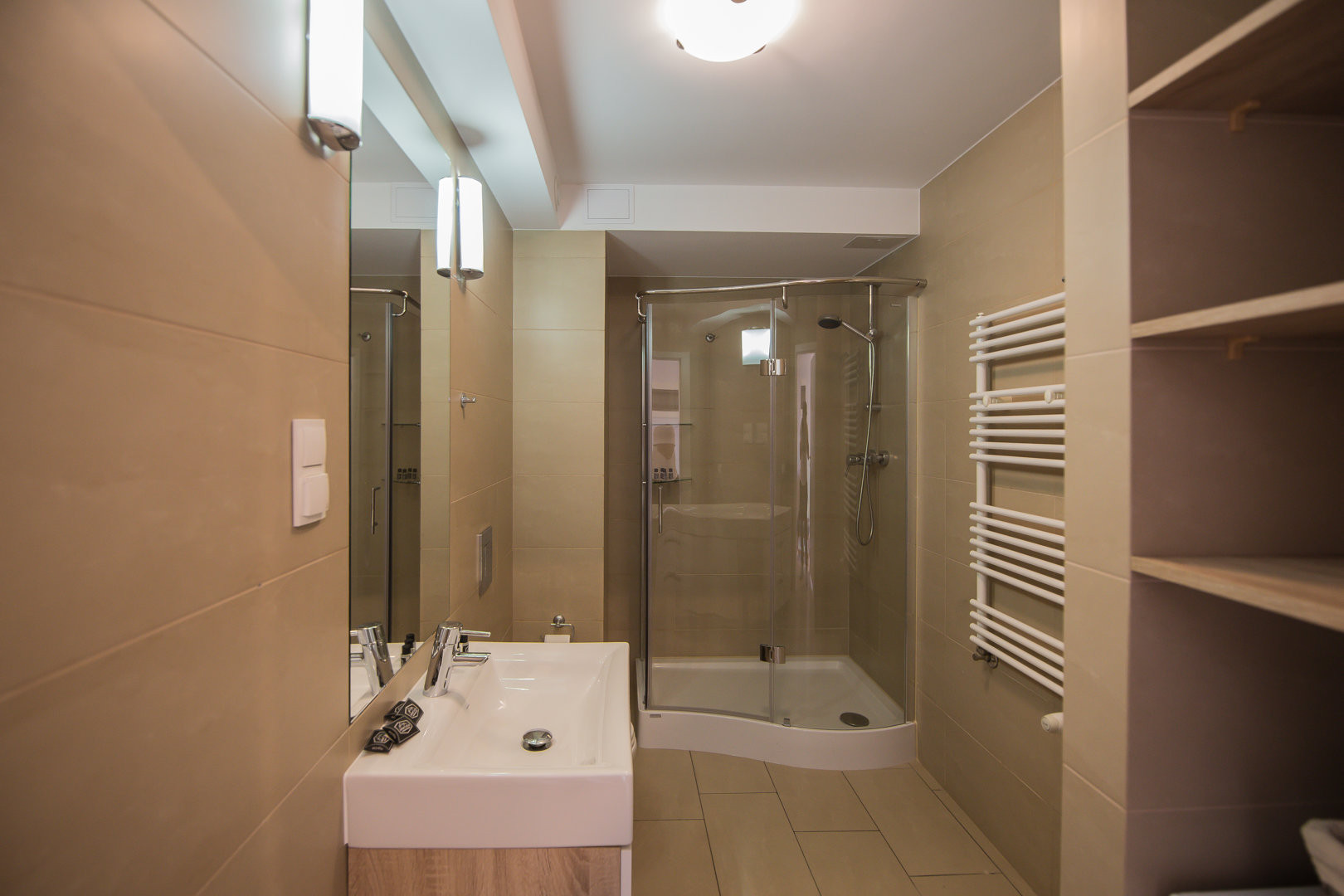 Apartament dla 4 osób znajduje się na parterze budynku. Wnętrze charakteryzuje się połączeniem klasyki z nowoczesnymi akcentami, co tworzy wyjątkową, przytulną atmosferę. Funkcjonalnie zaprojektowana powierzchnia składa się z salonu połączonego z aneksem kuchennym, sypialni oraz łazienka z prysznicem. W części wypoczynkowej znajduje się telewizor oraz wygodna rozkładana sofa. Z salonu można wyjść na balkon, z którego rozciąga się przepiękny widok na panoramę Wisły i gór. Centralnym punktem mieszkania jest jadalnia ze stołem i zestawem krzeseł. Atutem apartamentu jest osobna sypialnia z komfortowym podwójnym łóżkiem, gwarantującym wygodny odpoczynek po aktywnie spędzonym dniu. Goście mają do dyspozycji szybkie i darmowe Wi-Fi. Kuchnia, otwarta na część jadalną, jest przykładem perfekcyjnego wykorzystania przestrzeni. Białe, lakierowane szafki kuchenne idealnie współgrają z jasnobrązowym blatem, co nadaje wnętrzu świeży i czysty wygląd. Apartament wyróżnia się bogatym zestawem udogodnień i kompletnym wyposażeniem kuchennym, które umożliwia przygotowanie domowych posiłków. W łazience zostały przygotowane dla Gości zestaw kosmetyków. Mieszkanie szczególnie przypadnie do gustu osobom podróżującym ze zwierzętami, gdyż dopuszczalny jest pobyt wraz z pupilami.