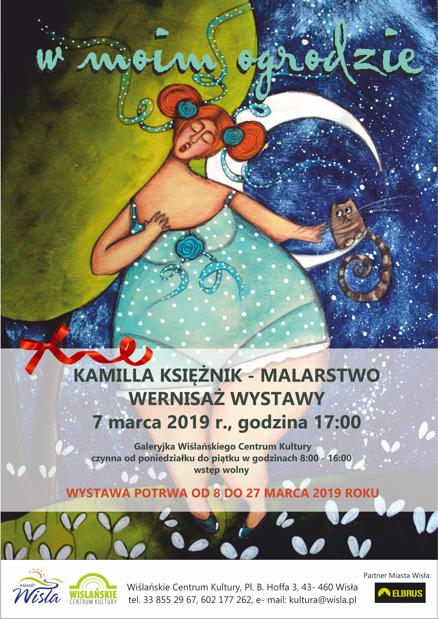 Od 8 do 27 marca w Galeryjce Wiślańskiego Centrum Kultury oglądać będzie można wystawę malarstwa Kamilli Księżnik pt. "W moim ogrodzie". Wernisaż wystawy odbędzie się 7 marca o godzinie 17:00. Serdecznie zapraszamy!