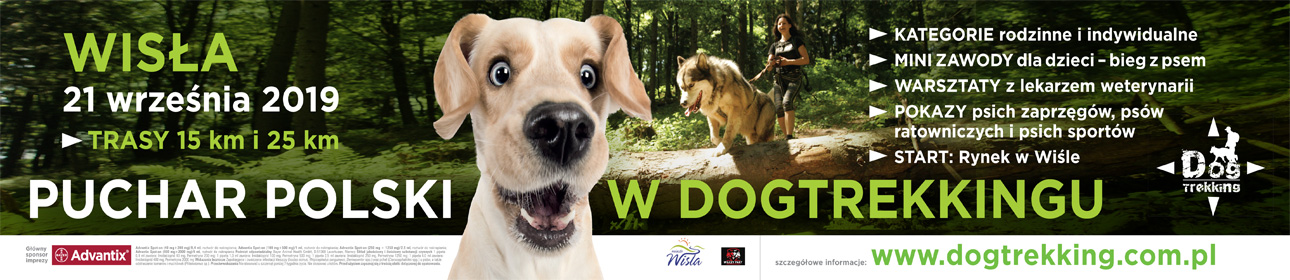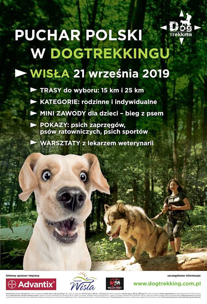 W Wiśle dnia 21 września 2019 r. zostanie przeprowadzony Puchar Polski w Dogtrekkingu. Dogtrekking jest najbardziej przyjazną, zorganizowaną formą wypoczynku dla psa i jego właściciela. Jest skierowany dla wszystkich bardziej lub mniej aktywnych właścicieli psów.