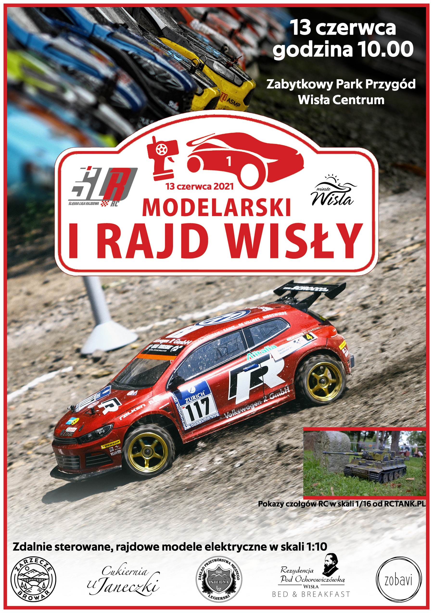 Tym razem już musi się udać! Impreza dwukrotnie odwołana, więc wychodzimy z założenia, że do trzech razy sztuka... Rajdowe emocje w małej skali. Legendarny, samochodowy Rajd Wisły wraca do Wisły jako eliminacja Śląskiej Ligi Rajdowej RC. Na starcie zobaczycie prawdziwe samochody rajdowe w skali 1:10, napędzane silnikami elektrycznymi. 13 czerwca 2021 w Zabytkowym Parku Przygód w Parku Kopczyńskiego będziecie mogli zobaczyć widowiskowe przejazdy modeli zdalnie sterowanych. Impreza ma charakter hobbystyczny i rodzinny, dlatego serdecznie zapraszamy do kibicowanie przy trasie, małych i dużych fanów sportów motorowych. Dodatkową atrakcją imprezy będą: pokazy czołgów RC w skali 1/16 od RCTANK.PL