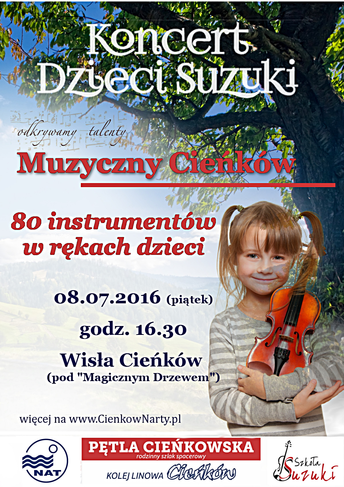 Kolej Linowa Cieńków oraz Szkoła Suzuki z Tychów zaprasza na koncert pod Magicznym Drzewem na Cieńkowie (początek o godz. 16:30).