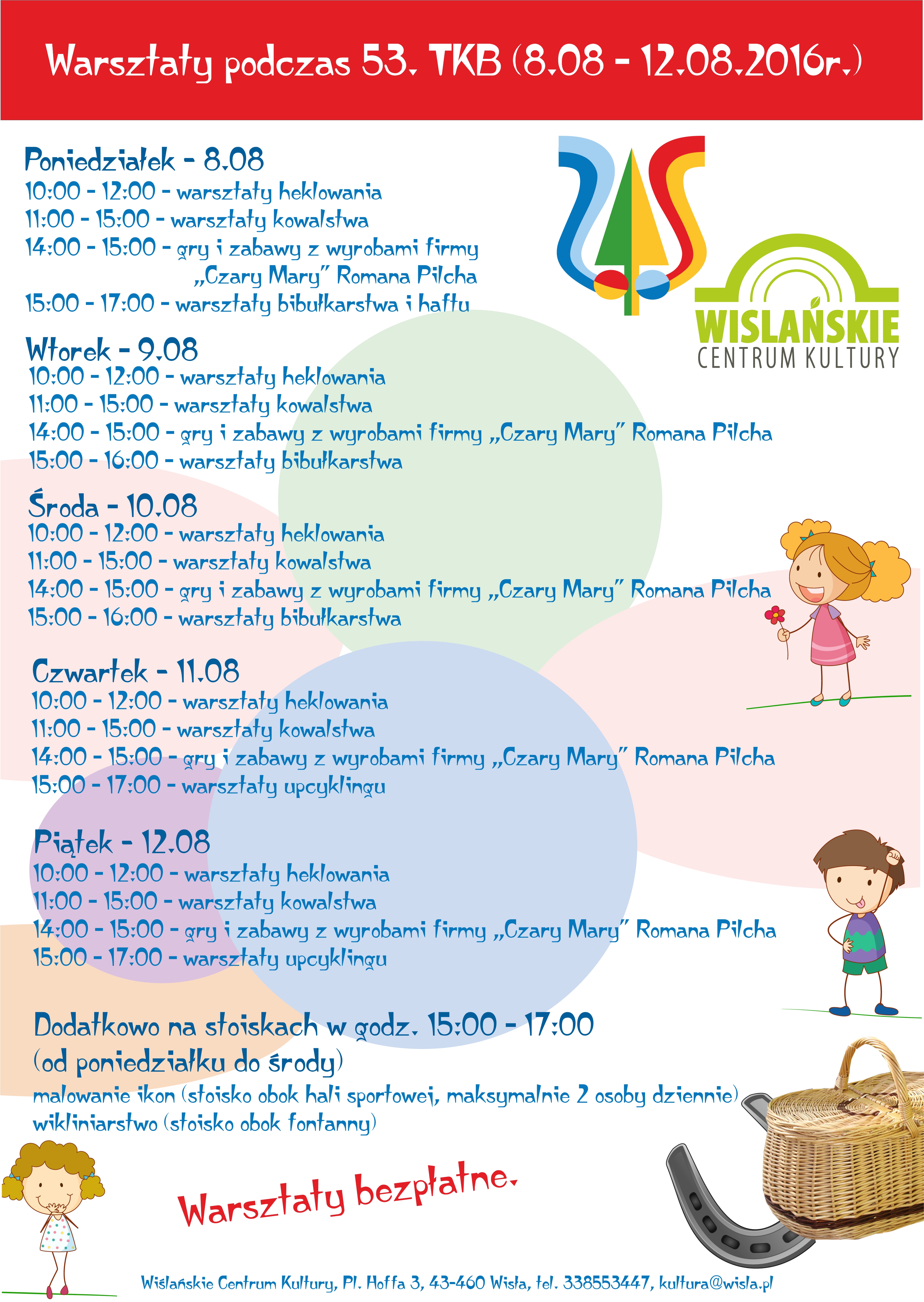 Serdecznie zpraszamy na warsztaty które odbędą się jak co roku podczas Tygodnia Kultury Beskidzkiej.