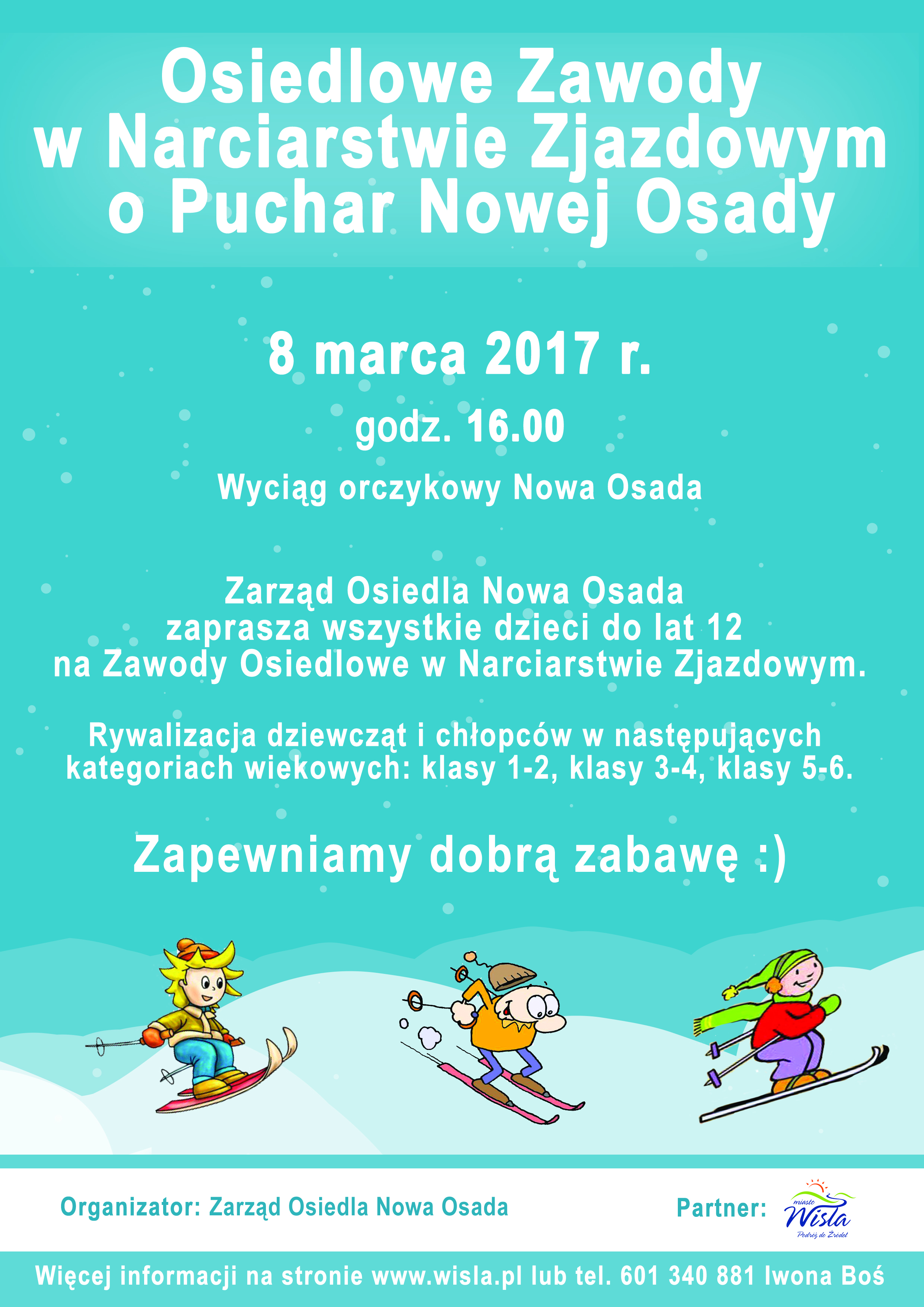 Zarząd Osiedla nr 7 w Nowej Osadzie zaprasza w dniu 8 marca na Osiedlowe Zawody w Narciarstwie Zjazdowym o Puchar Nowej Osady.