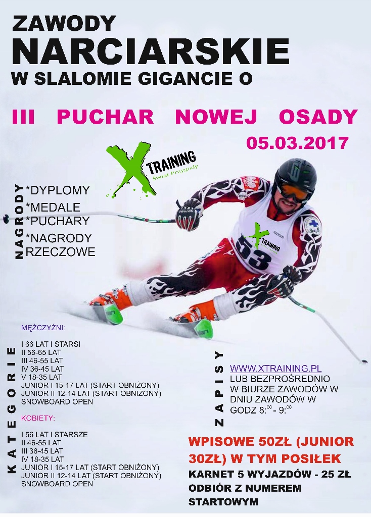 5 marca zapraszamy na Zawody narciarskie w slalomie gigancie o III Puchar Nowej Osady.