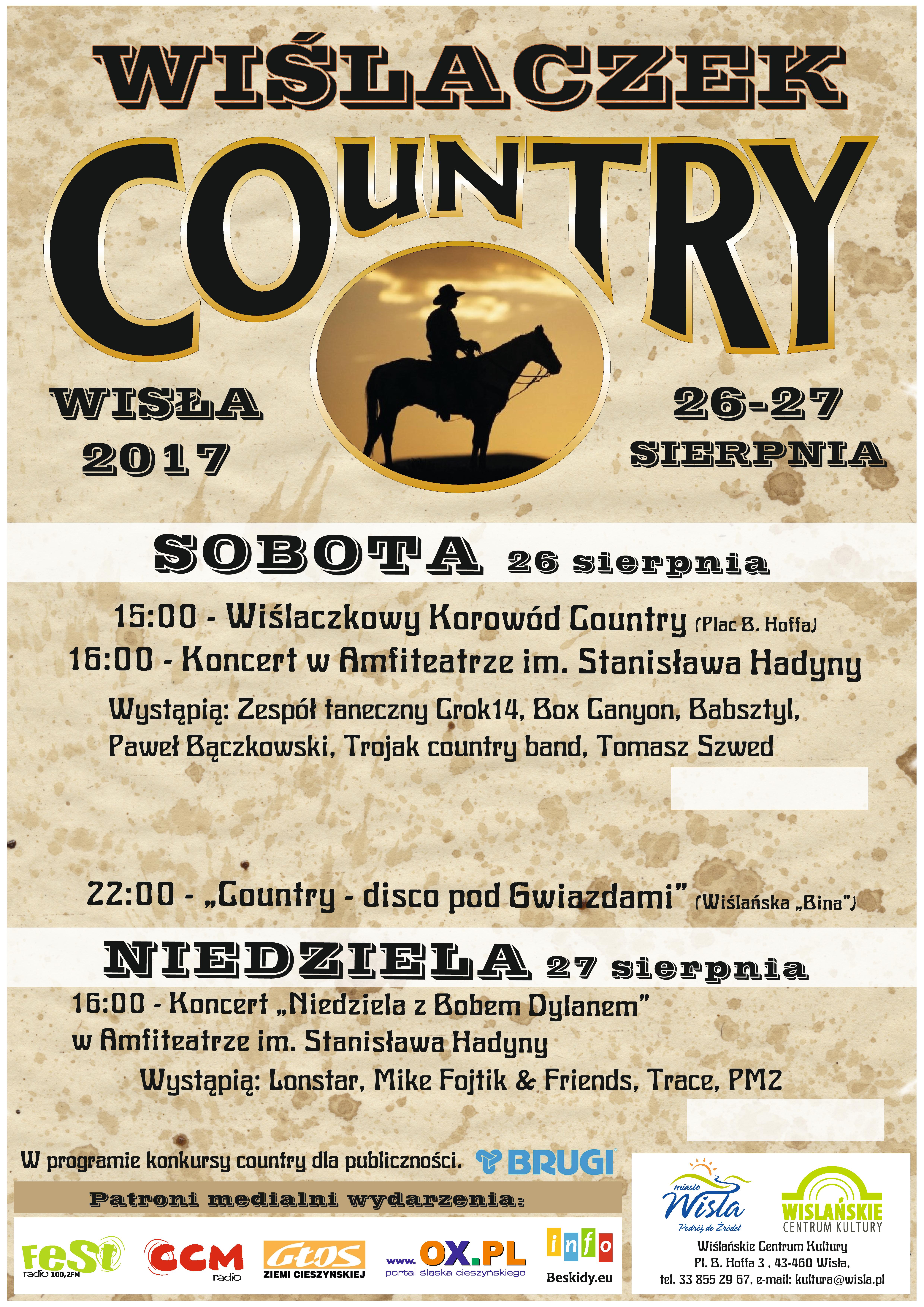 W dniach 26-27 sierpnia w Amfiteatrze im. St. Hadyny odbędzie się Wiślaczek Country.