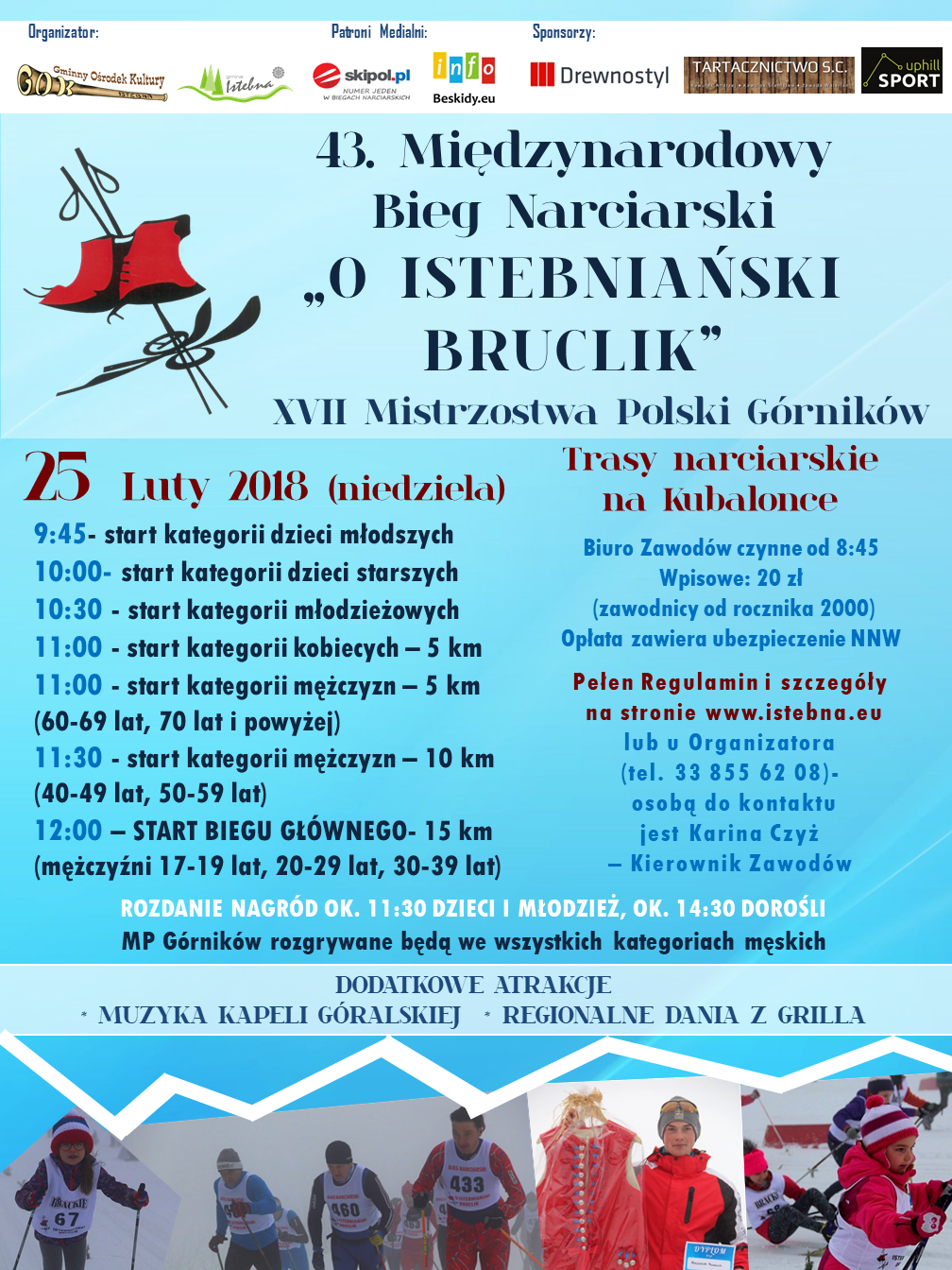 25 lutego wszystkich amatorów biegów narciarskich zapraszamy na Kubalonkę, gdzie odbędą się 43. Bieg o Istebniański Bruclik i XVII Mistrzowstwa Polski Górników.