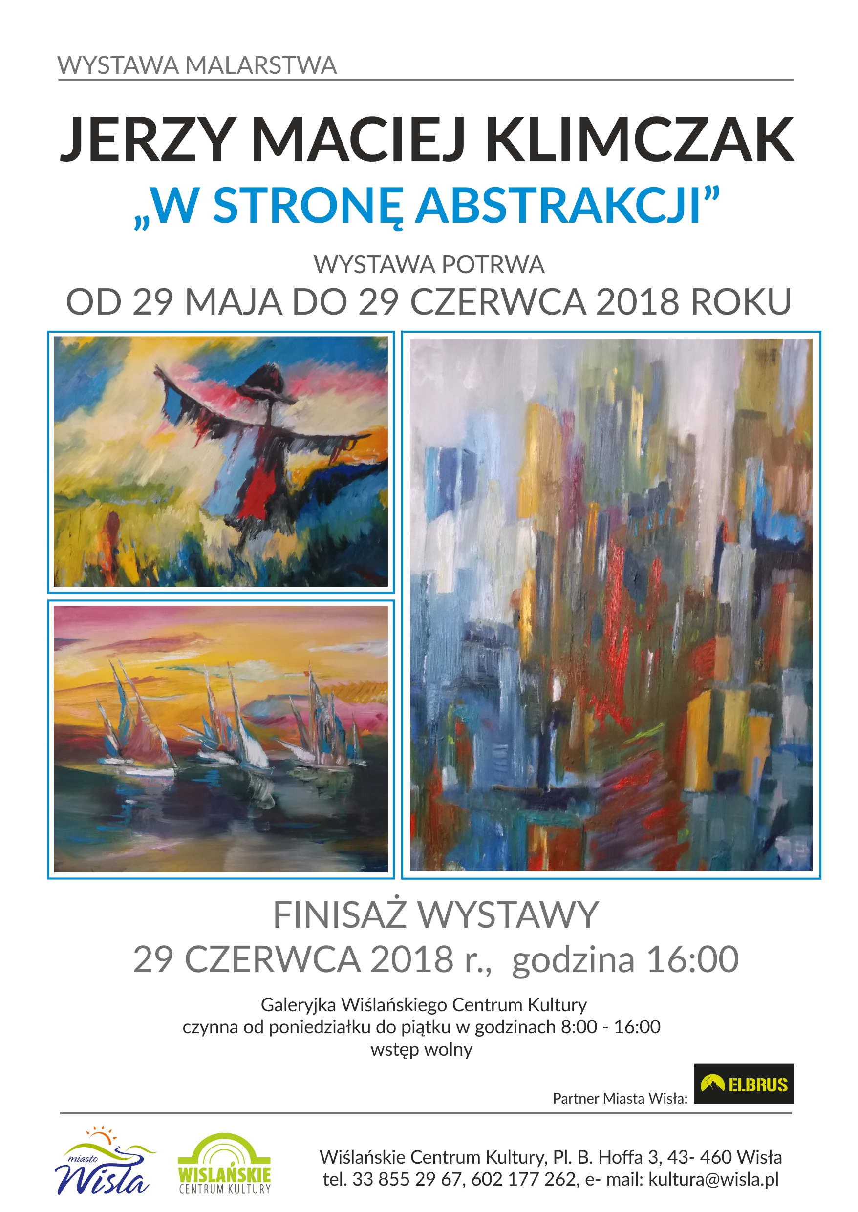 W dniach od 29 maja do 29 czerwca 2018 r. w Galeryjce Wiślańskiego Centrum Kultury oglądać będzie można wystawę malarstwa Jerzego Macieja Klimczaka pt. "W stronę abstrakcji".