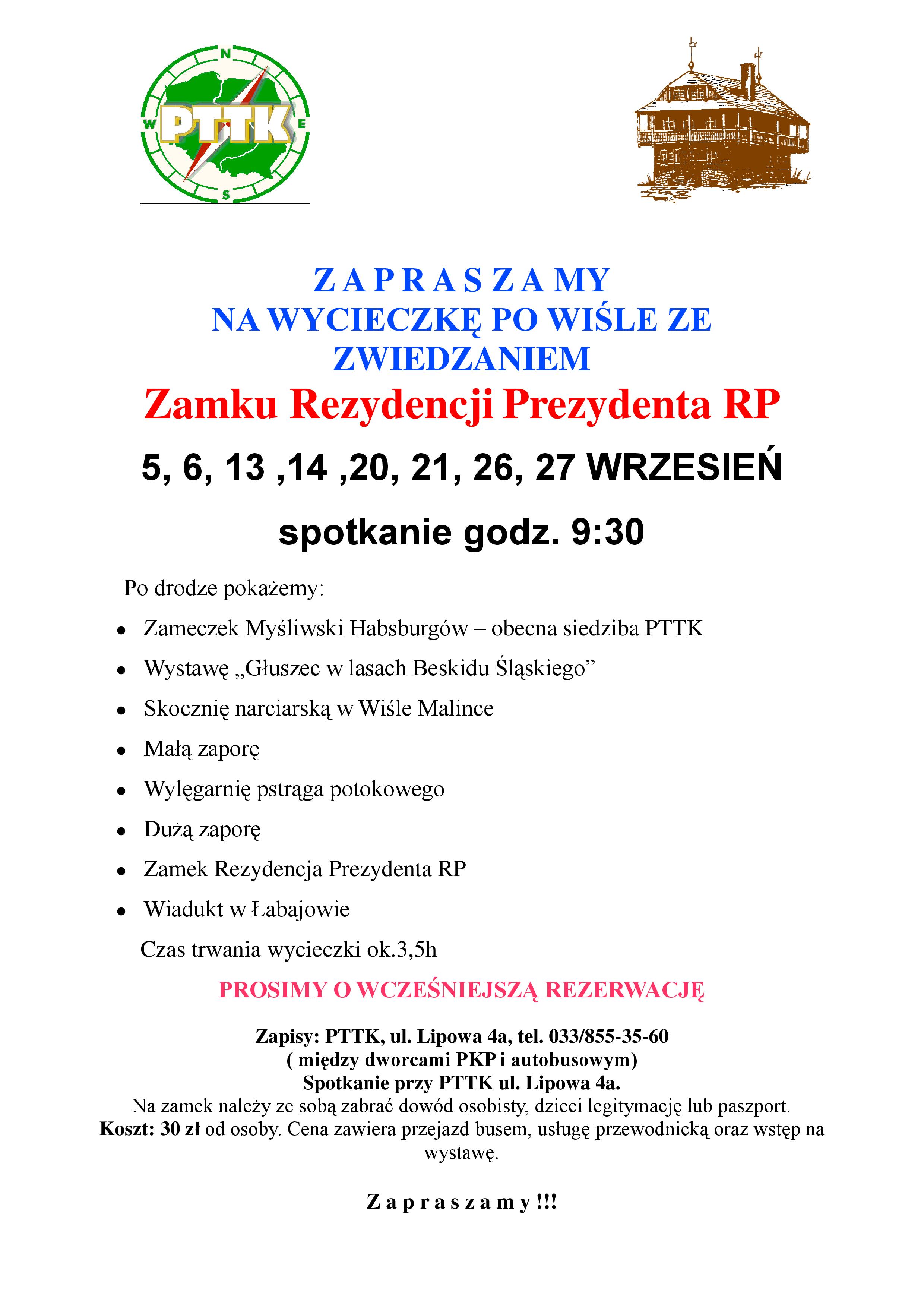 - Rezydencję Prezydenta RP - Zamek w Wiśle
