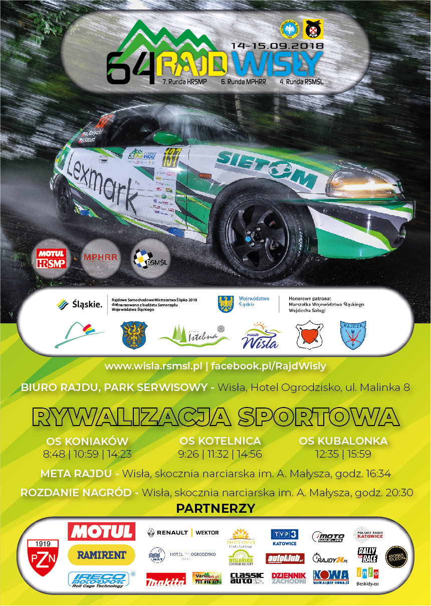 Za niespełna miesiąc odbędzie się 64. edycja Rajdu Wisły – imprezy, która przez lata zyskała sobie uznanie zarówno kierowców, jak i kibiców. Na trudnych technicznie trasach w Beskidach ponownie będzie można zobaczyć w akcji wiele samochodów rajdowych. W szranki staną kierowcy i piloci z Motul Historycznych Rajdowych Samochodowych Mistrzostw Polski, Rajdowych Samochodowych Mistrzostw Śląska, a także Mistrzostw Polski w Historycznych Rajdach na Regularność.