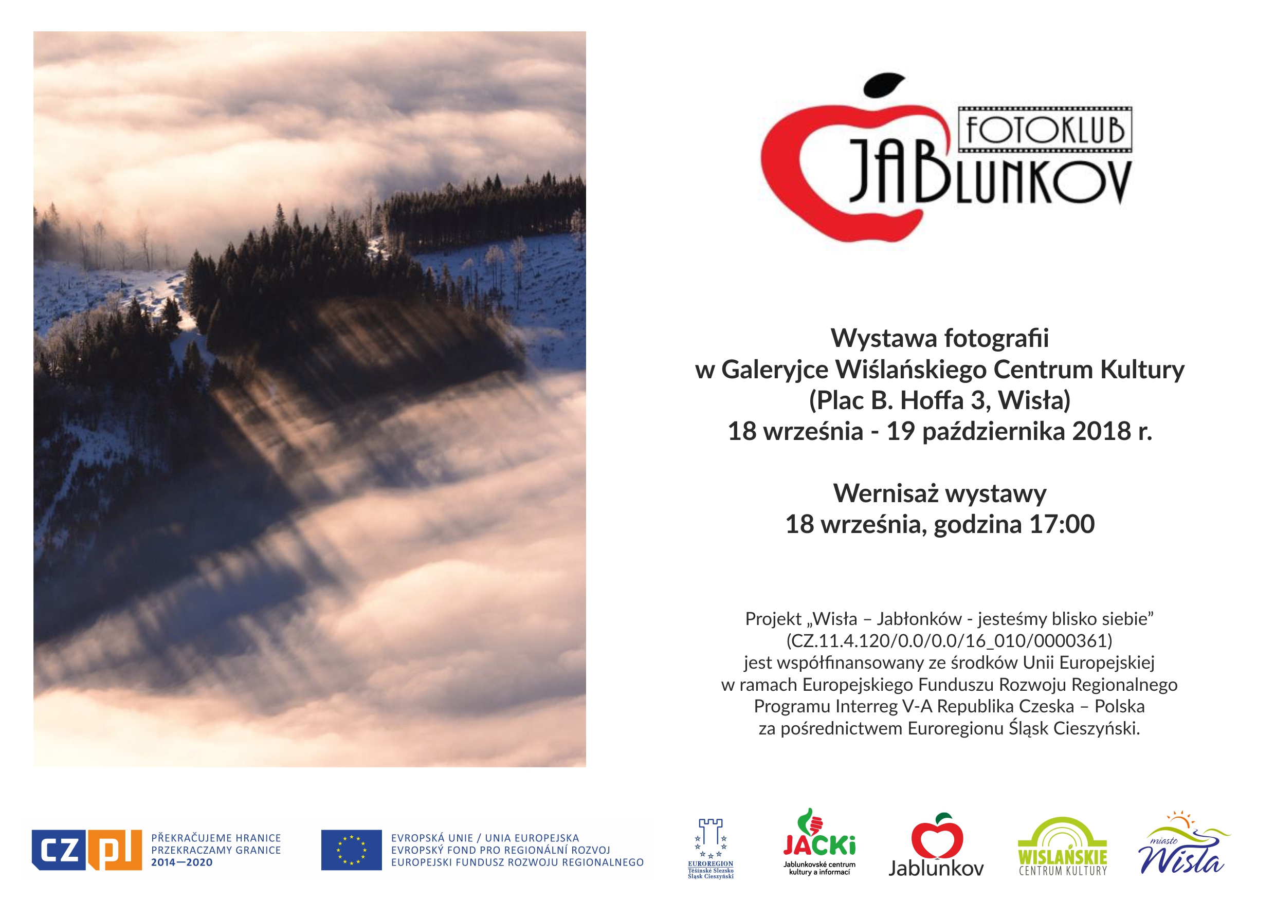 W dniach od 18 września do 19 października 2018 r. w Galeryjce Wiślańskiego Centrum Kultury oglądać można wystawę fotografii FOTOKLUBU JABLUNKOV.