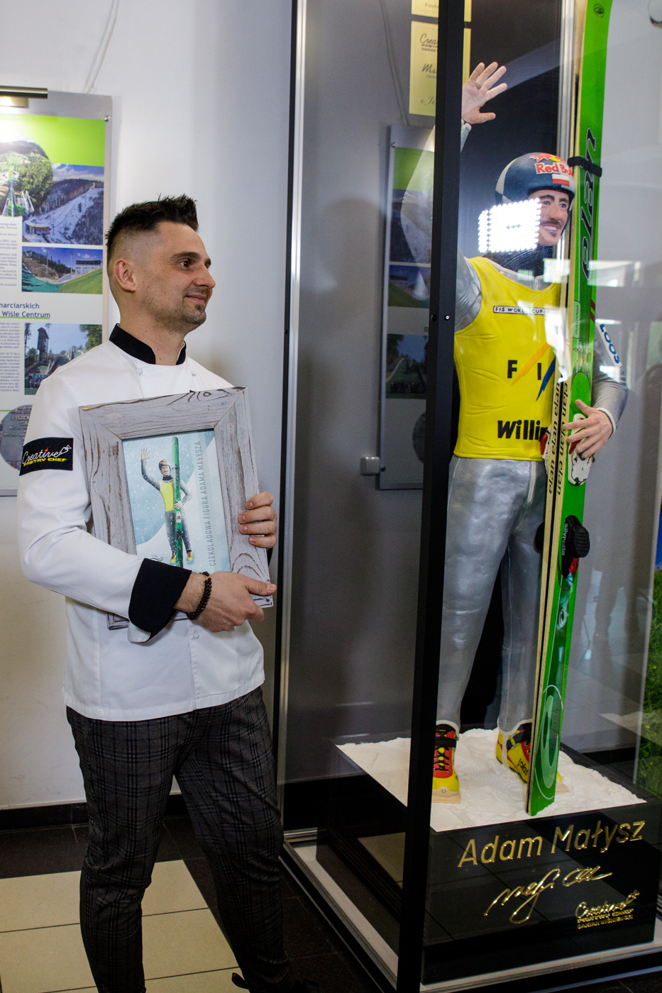 - Skupiłem się na tym, żeby oddać charakter Adama Małysza, z detalami, z wąsem i emocjami na twarzy. Był duży stres kiedy Adam przyjechał do mnie do pracowni by zobaczyć rzeźbę po raz pierwszy. Była fajna i szybka akceptacja a Adam po raz kolejny okazał sie bardzo skromnym i ciepłym człowiekiem, prawdziwym mistrzem. - mówił Damian Wiśniewski. - Zużyłem około 175 kg czekolady, a całość przygotowania postaci to ponad 430 godzin - dodał na koniec artysta.
