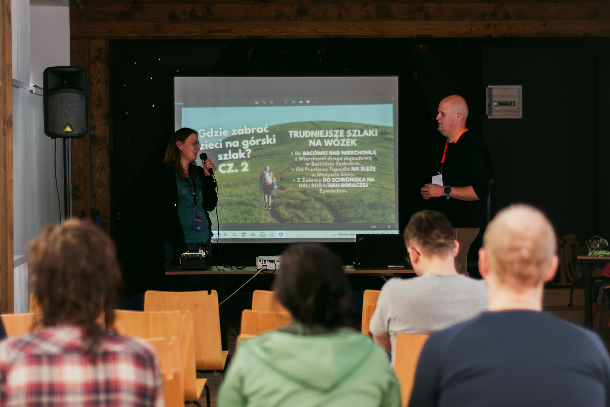 Mirkę i Sławka Chrobok - przedstawicieli projektu "Każdy ma swój Everest", którzy przedstawili zagadnienie bezpiecznej turystyki osób z niepełnosprawnością, a także wskazali, jak możemy wspierać je na szlaku.