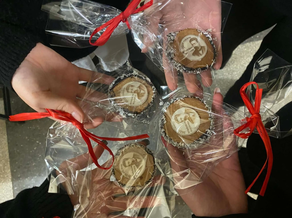 z radością częstować się przygotowanymi specjałami. Festiwal Reymontowski miał też swój kulinarny akcent przygotowany dla całej społeczności szkolnej – w postaci piernika ozdobionego – opłatkiem, z którego dumnie spoglądał Władysław Reymont w roku