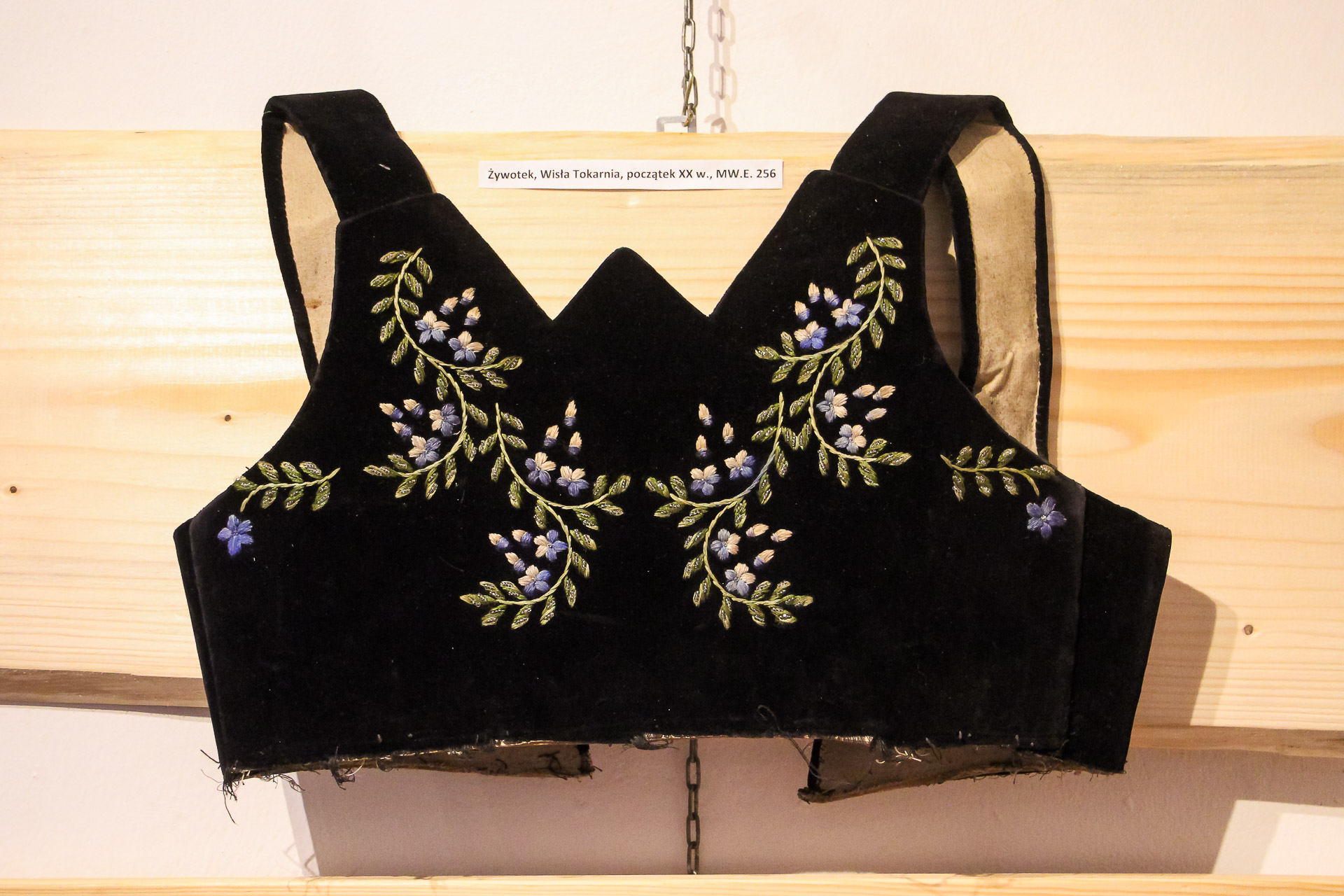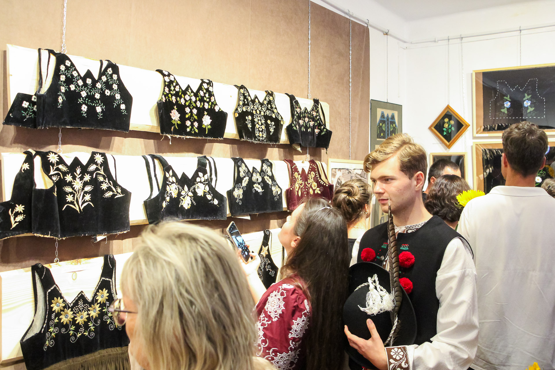 Goście wystawy mogli podziwiać bogactwo wzorów zdobiących żywotki, czyli tradycyjne części kobiecego stroju ludowego. Delikatne kwiatowe ornamenty i misternie wyszywane motywy stanowią swoisty „haftowany ogród”, w którym każda nitka opowiada historię o kunszcie, cierpliwości i pięknie dawnych tradycji.