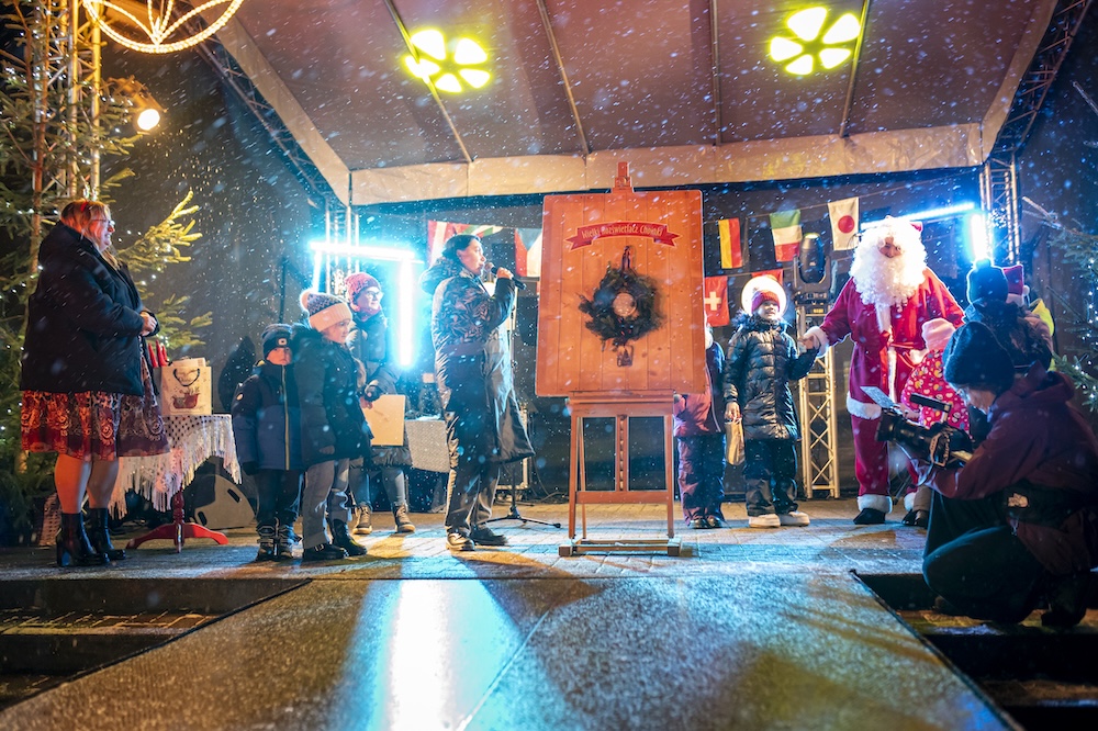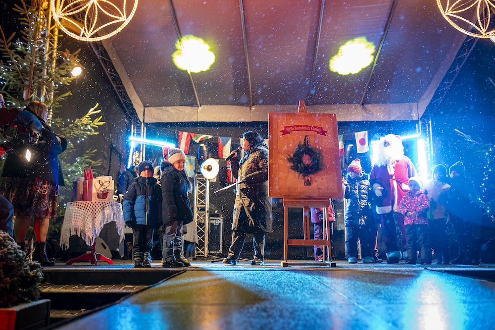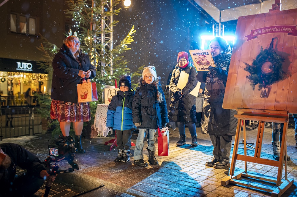 Finałem mikołajowego spotkania było rozświetlenie wiślańskiej choinki, w czym asystował Mikołaj i Zastępczyni Burmistrza Miasta Wisła Katarzyna Czyż Kaźmierczak. Zgodnie z zapowiedzią wielki rozświetlacz choinki wspólnie uruchomili Zoja i Andrzej Nogawczyk, którzy wgrali taką możliwość w mikołajkowym konkursie.