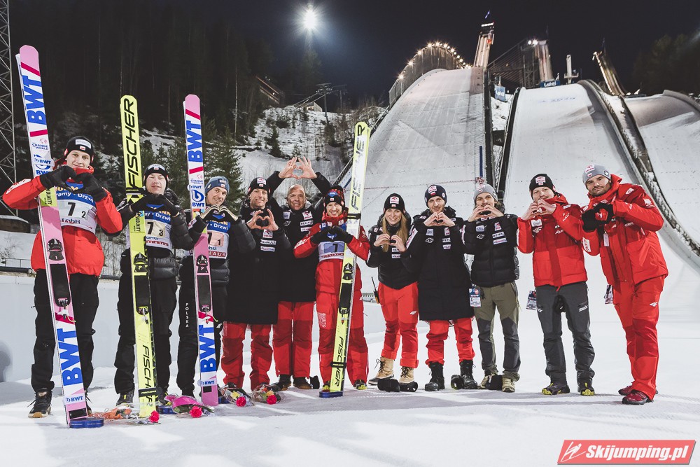 W serii finałowej nasi skoczkowie od początku utrzymywali pozycję na podium. Lot Piotra Żyły na 132 metr umocnił Polaków na drugiej pozycji, którą zachowali Paweł Wąsek (122,5 m) i Aleksander Zniszczoł (120,5 m). W decydującej próbie Kamil Stoch wylądował na 123 metrze, co oznaczało dla naszej reprezentacji spadek na trzecie miejsce. Miejsce na podium naszej drużyny, w kontekście nieobecności Dawida Kubackiego, było pozytywnym zaskoczeniem! Zawody wygrali Austriacy przed Słoweńcami.