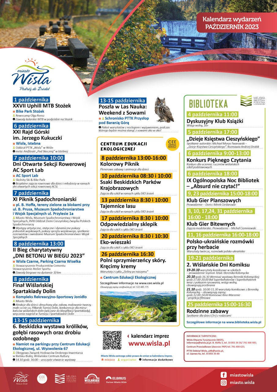 Zachęcamy gestorów branży hotelarskiej i nie tylko do zapoznania się z aktualnym kalendarzem imprez organizowanych w Wiśle w październiku.