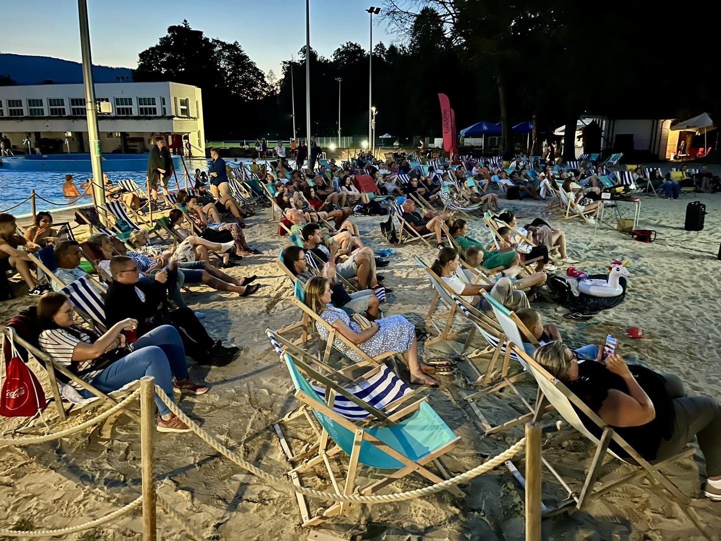 Dzień później zmiana otoczenia i tym razem możliwość obejrzenia filmu z plaży lub wody Basenów Wisła. Wyjątkowo ciepły wieczór sprawił, że na seans przyszła spora rzesza kinomaniaków. Tym razem na zgromadzonych czekała lekka i przyjemna romantyczna komedia "Piękna katastrofa 2".