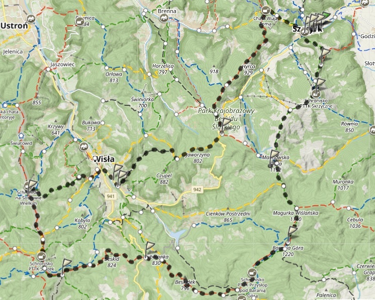 1. Trasa „Beskida Pełna” – liczy ona ponad 60 km. → limit czasu 20 godzin