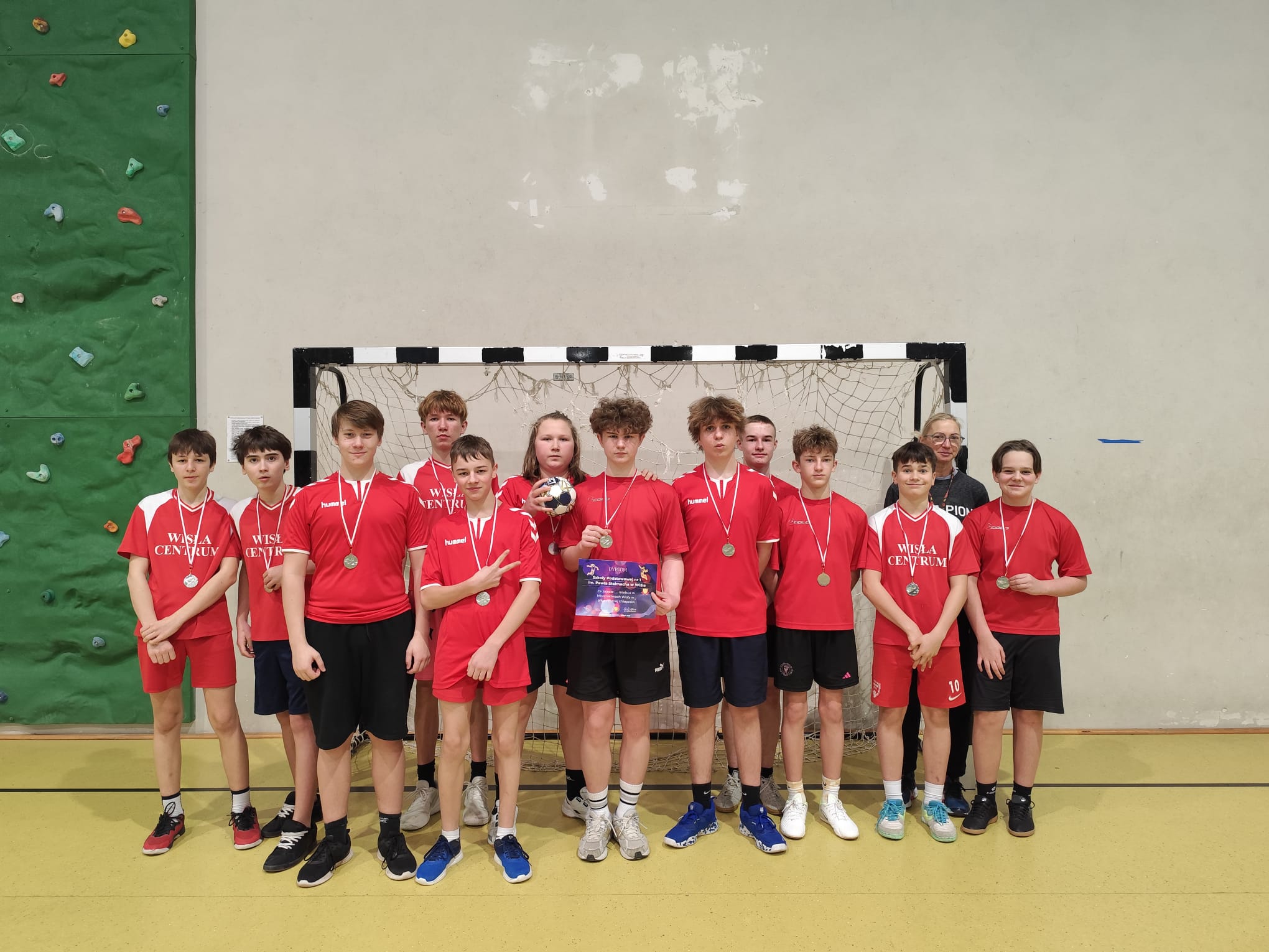 Kiedy wszyscy myśleli, że ostatni mecz pomiędzy SP 5 i ZSP 2 będzie już tylko formalnością, zawodnicy z Malinki pod prowadzeniem Pana Jakuba Matusznego zaskoczyli graczy z „piątki” bardzo szybko wychodząc na prowadzenie i kończąc pierwszą połowę wynikiem 5:2! Jednak drużyna z Jawornika nie składała broni i konsekwentnie wspierana przez trenera Pana Andrzeja Cieślara doprowadziła w końcu do remisu 6:6 na 3 minuty przed końcem regulaminowego czasu gry. Dodatkowo, zwycięstwo Malinki dawało bardzo dużą szansę, że to jednak uczniowie z SP 1 tego dnia będą cieszyli się z pierwszego miejsca dzięki lepszemu bilansowi bramek. Jednak druga połowa meczu przebiegała już do końca pod dyktando zawodników z SP 5 i to oni wygrywając 9:6 wywalczyli tytuł Mistrzów Wisły w piłce ręcznej igrzysk młodzieży oraz prawo do gry w eliminacjach powiatowych.
