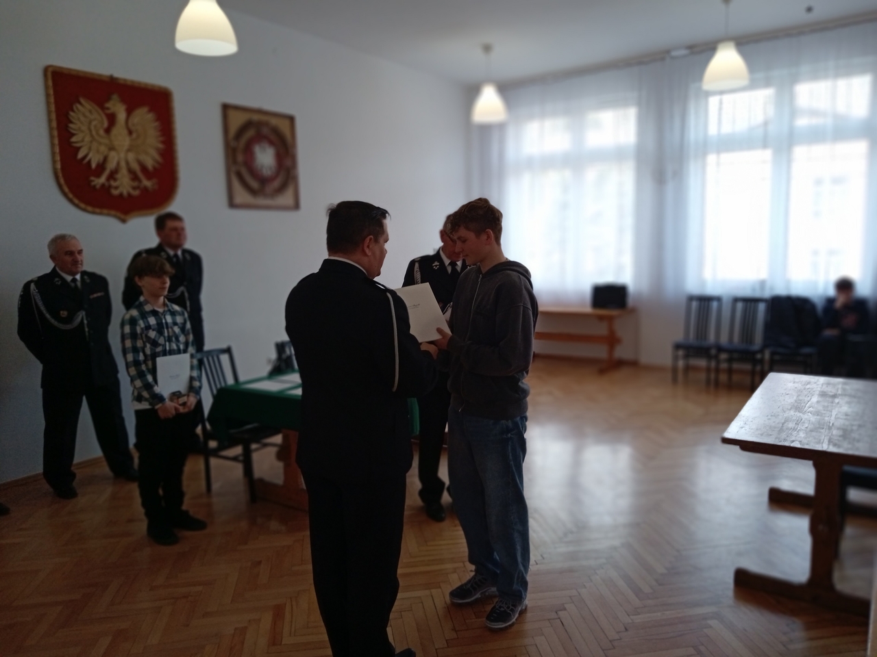 Zwycięzcom eliminacji miejskich OTWP osobiście gratulowała i wręczał dyplomy burmistrz a zarazem Prezes Zarządu Powiatowego ZOSP RP w Cieszynie Tomasz Bujok.