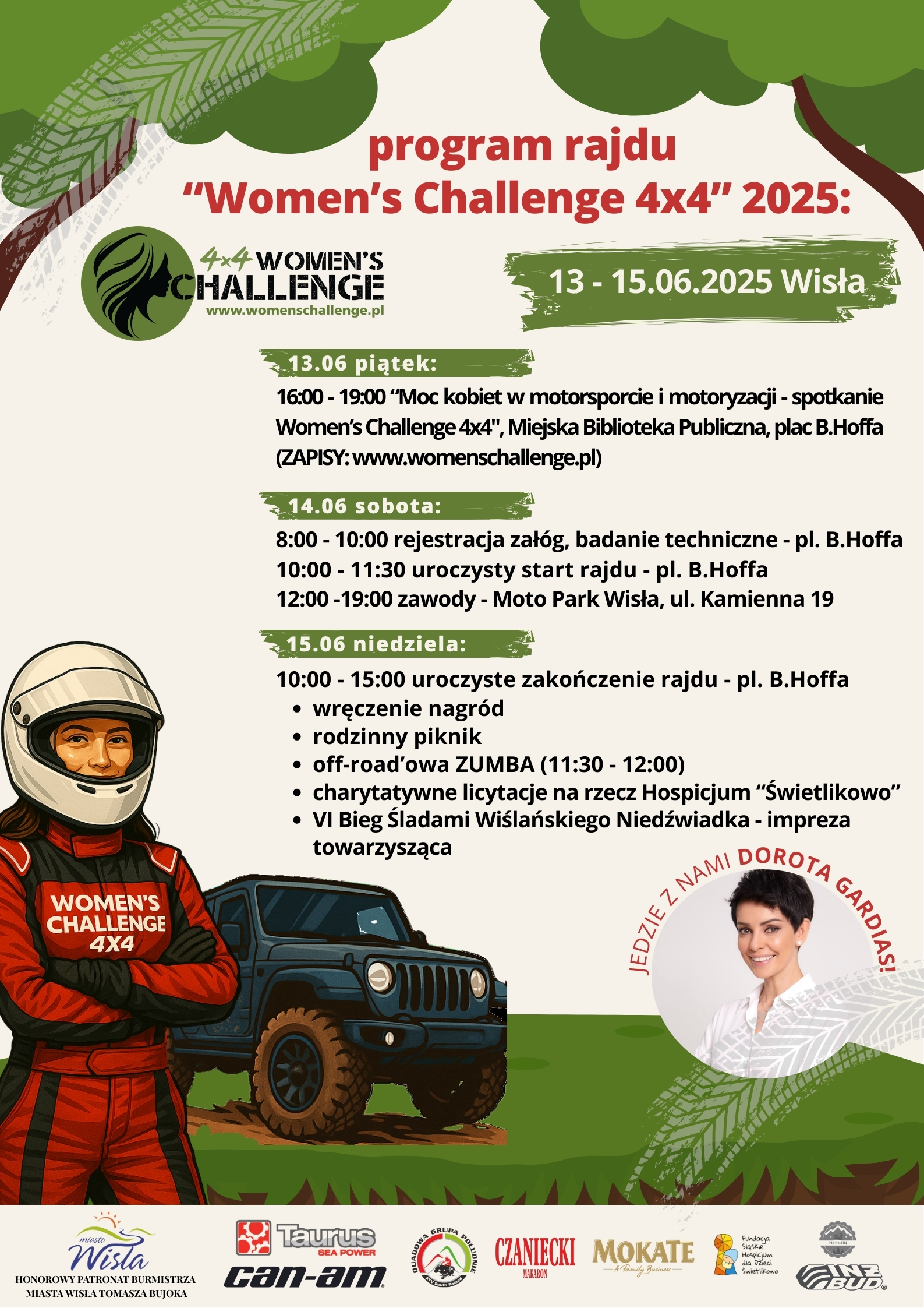 Przed nami VIII edycja międzynarodowego rajdu Women's Challenge 4x4 – wydarzenia stworzonego z myślą o kobietach, które nie boją się wyzwań, błota i… dobrej zabawy. W rajdzie wezmą udział zawodniczki z Polski i Niemiec – w terenówkach, quadach i UTV. W programie m.in.:
