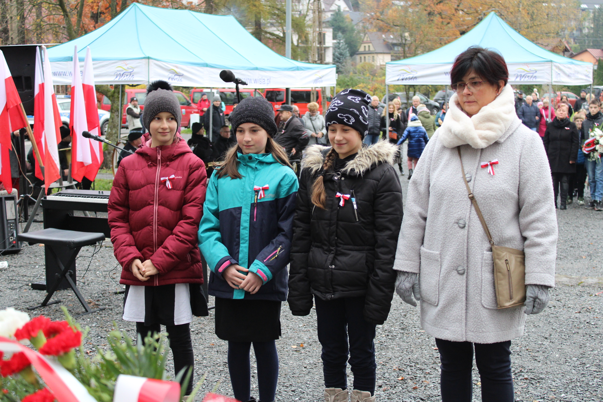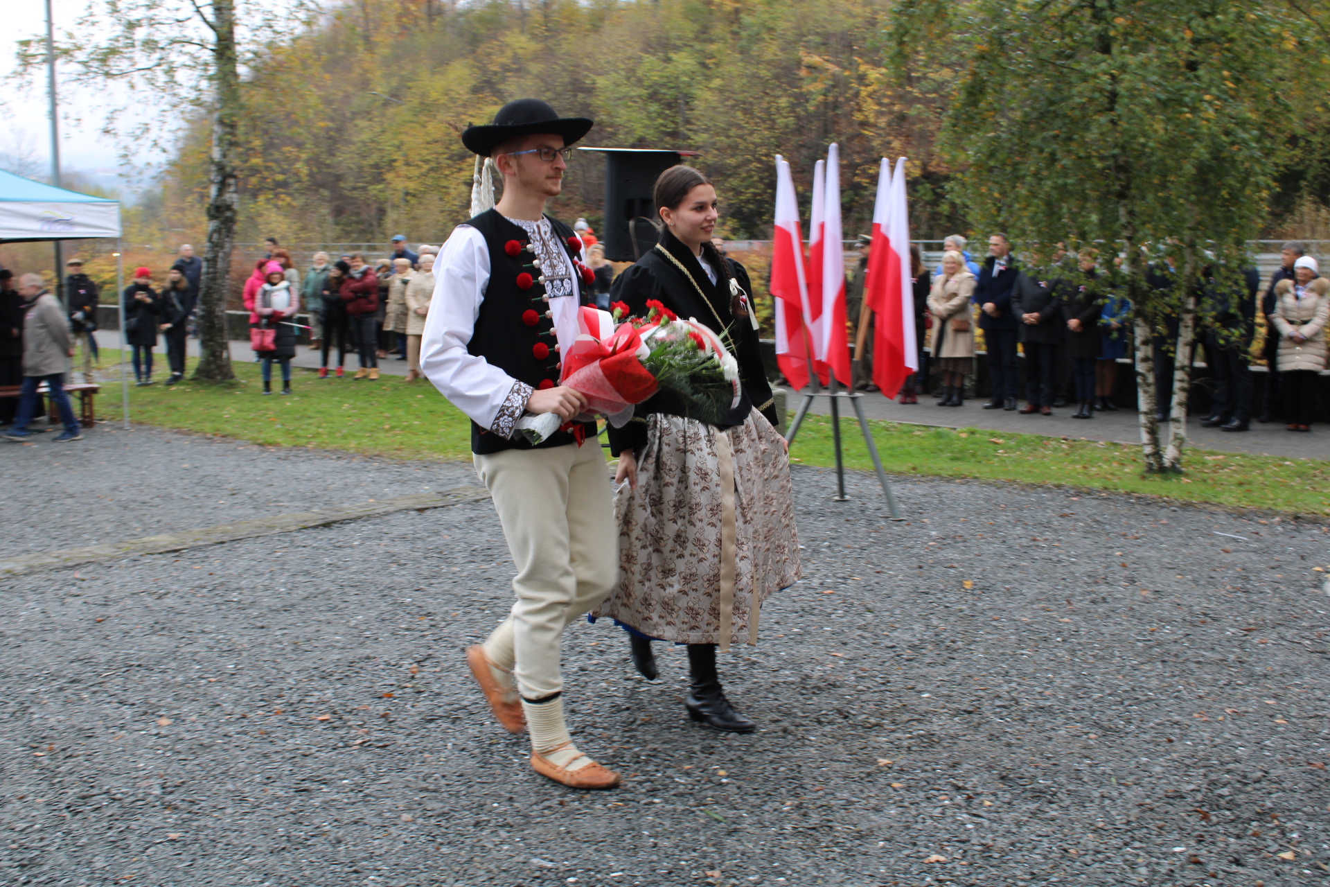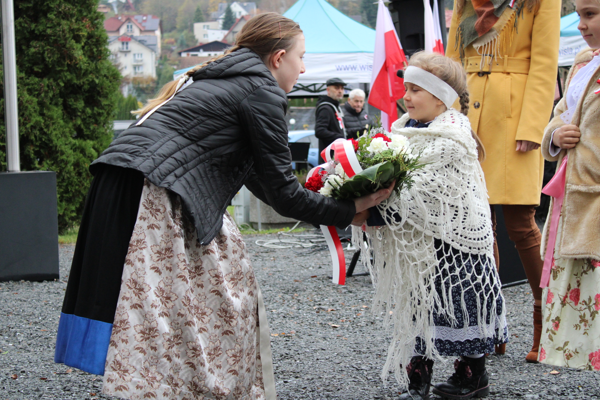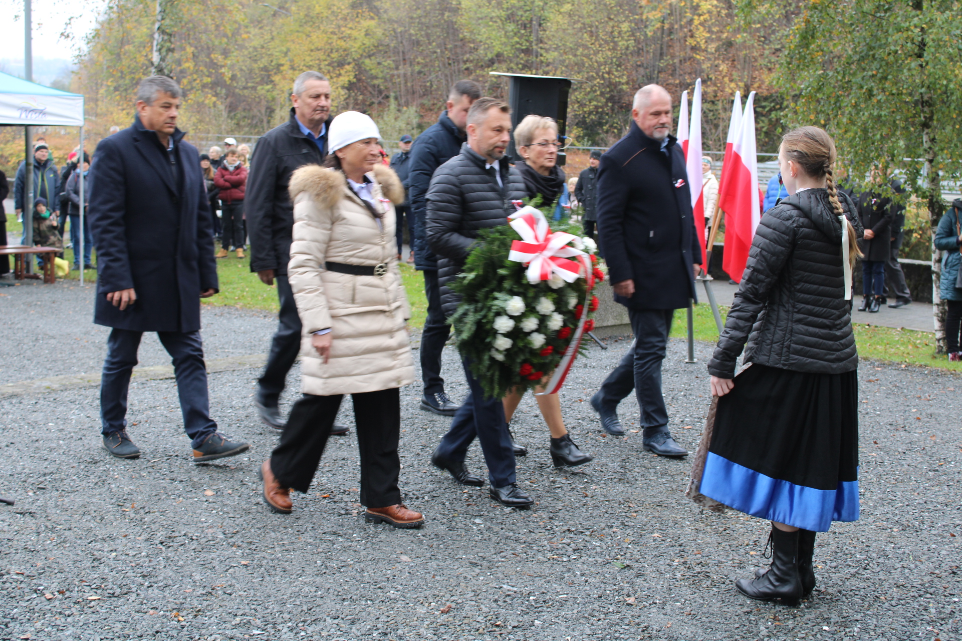 Przy werblach orkiestry pod pomnikiem złożono wieńce i wiązanki kwiatów. Wszystkie biało-czerwone, by oddać cześć tym, którzy walczyli i tym, którzy polegli w walce o wolność naszej ojczyzny. Jako pierwszy wieniec złożył burmistrz miasta w asyście sekretarza i skarbnika miasta, a zaraz po nich delegacja Rady Miasta. Nie zabrakło także delegacji i przedstawicieli Zarządu i Rady Powiatu Cieszyńskiego, Policji, Straży Miejskiej, Straży Granicznej, Zarządów Wiślańskich Osiedli, Nadleśnictwa Wisła, jednostek OSP z terenu Wisły, Górskiego Ochotniczego Pogotowia Ratunkowego, Wiślańskiego Centrum Kultury, Stowarzyszenia „Grupa Twórców Wiślanie”, Towarzystwa Miłośników Wisły, Wiślańskiej Akademii Aktywnych, Zespołu Regionalnego „Wisła”, Zespołu Regionalnego "Wisła Plus" i stowarzyszenia “Aktywni w Dziedzinie", PTTK/Oddziału Wisła i Koła Przewodników Beskidzkich, Szkoły Podstawowej nr 1 Wisła Centrum, Szkoły Podstawowej nr 2 Wisła Czarne, Zespołu Szkolno–Przedszkolnego nr 1 Wisła Głębce, Zespołu Szkolno-Przedszkolnego nr 2 Wisła Malinka, Szkoły Podstawowej nr 5 Wisła Jawornik, Liceum Ogólnokształcącego im. P. Stalmacha w Wiśle oraz Zespołu Szkół Gastronomiczno–Hotelarskich im. W. Reymonta w Wiśle. Honorową wartę przy pomniku pełnili członkowie Zespołu Regionalnego “Wisła”, którzy włączyli się również w odbieranie wieńców i wiązanek pod pomnikiem. Za ich pomoc i góralski akcent bardzo dziękujemy. Dziękujemy też wszystkim występującym artystom i osobom zaangażowanym w przebieg uroczystości oraz wszystkim tak licznie zgromadzonym przy pomniku mieszkańcom i gościom.