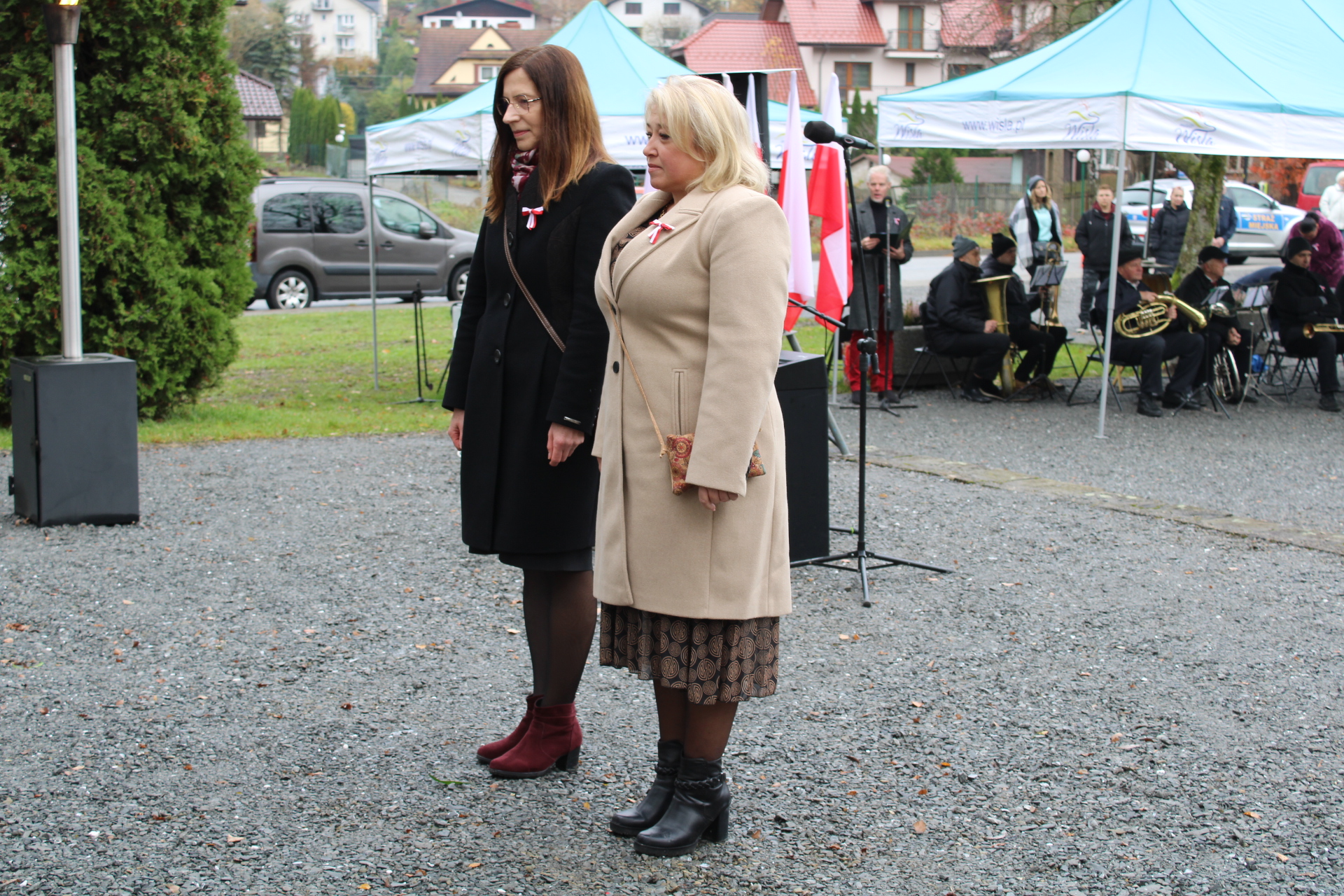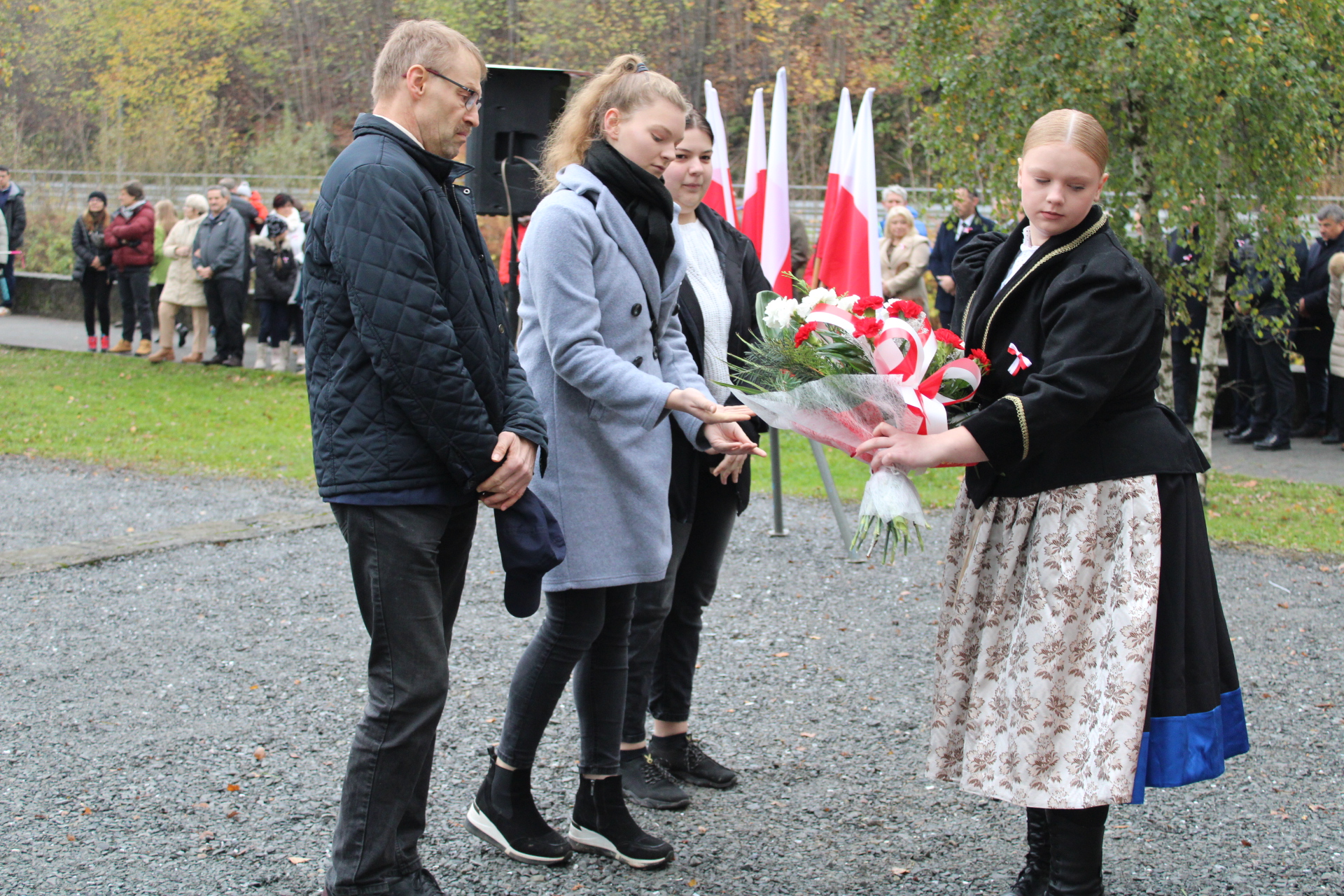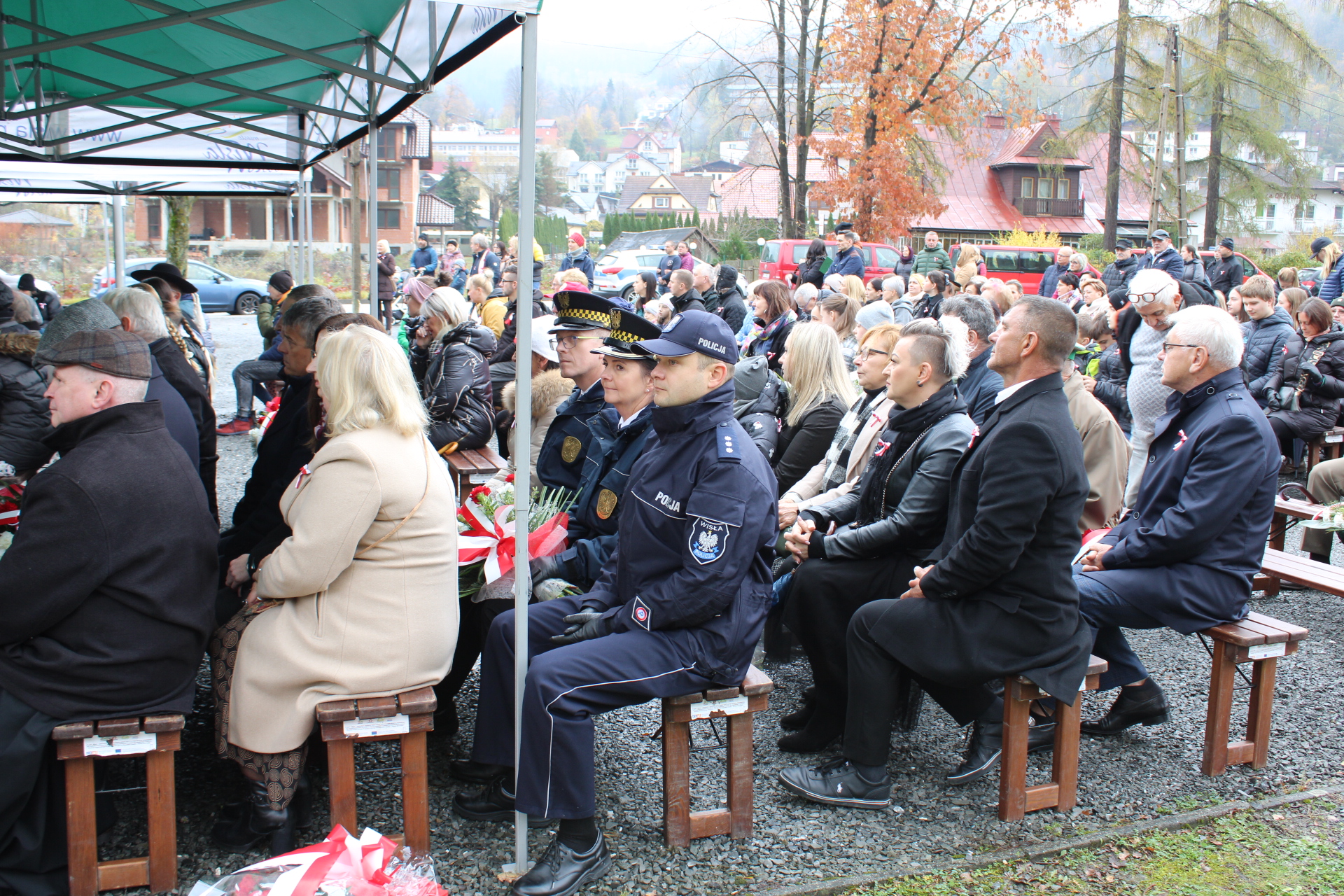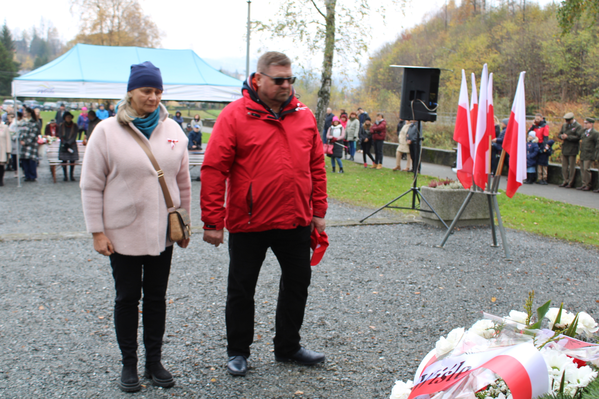 Przy werblach orkiestry pod pomnikiem złożono wieńce i wiązanki kwiatów. Wszystkie biało-czerwone, by oddać cześć tym, którzy walczyli i tym, którzy polegli w walce o wolność naszej ojczyzny. Jako pierwszy wieniec złożył burmistrz miasta w asyście sekretarza i skarbnika miasta, a zaraz po nich delegacja Rady Miasta. Nie zabrakło także delegacji i przedstawicieli Zarządu i Rady Powiatu Cieszyńskiego, Policji, Straży Miejskiej, Straży Granicznej, Zarządów Wiślańskich Osiedli, Nadleśnictwa Wisła, jednostek OSP z terenu Wisły, Górskiego Ochotniczego Pogotowia Ratunkowego, Wiślańskiego Centrum Kultury, Stowarzyszenia „Grupa Twórców Wiślanie”, Towarzystwa Miłośników Wisły, Wiślańskiej Akademii Aktywnych, Zespołu Regionalnego „Wisła”, Zespołu Regionalnego "Wisła Plus" i stowarzyszenia “Aktywni w Dziedzinie", PTTK/Oddziału Wisła i Koła Przewodników Beskidzkich, Szkoły Podstawowej nr 1 Wisła Centrum, Szkoły Podstawowej nr 2 Wisła Czarne, Zespołu Szkolno–Przedszkolnego nr 1 Wisła Głębce, Zespołu Szkolno-Przedszkolnego nr 2 Wisła Malinka, Szkoły Podstawowej nr 5 Wisła Jawornik, Liceum Ogólnokształcącego im. P. Stalmacha w Wiśle oraz Zespołu Szkół Gastronomiczno–Hotelarskich im. W. Reymonta w Wiśle. Honorową wartę przy pomniku pełnili członkowie Zespołu Regionalnego “Wisła”, którzy włączyli się również w odbieranie wieńców i wiązanek pod pomnikiem. Za ich pomoc i góralski akcent bardzo dziękujemy. Dziękujemy też wszystkim występującym artystom i osobom zaangażowanym w przebieg uroczystości oraz wszystkim tak licznie zgromadzonym przy pomniku mieszkańcom i gościom.