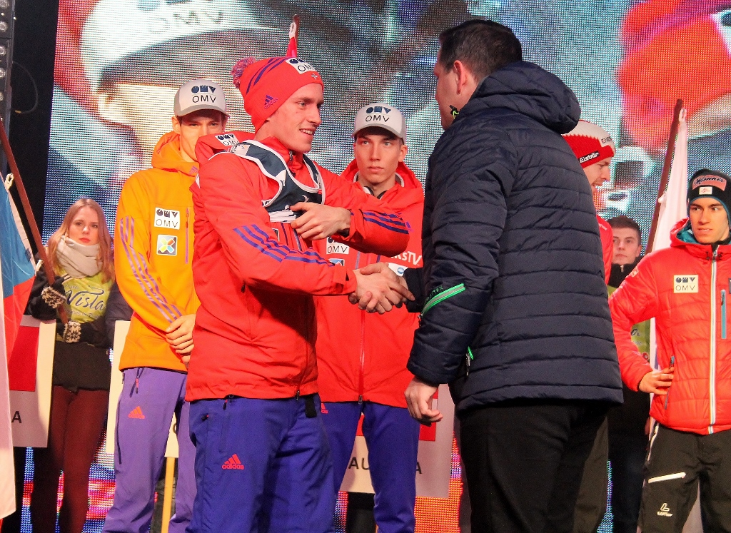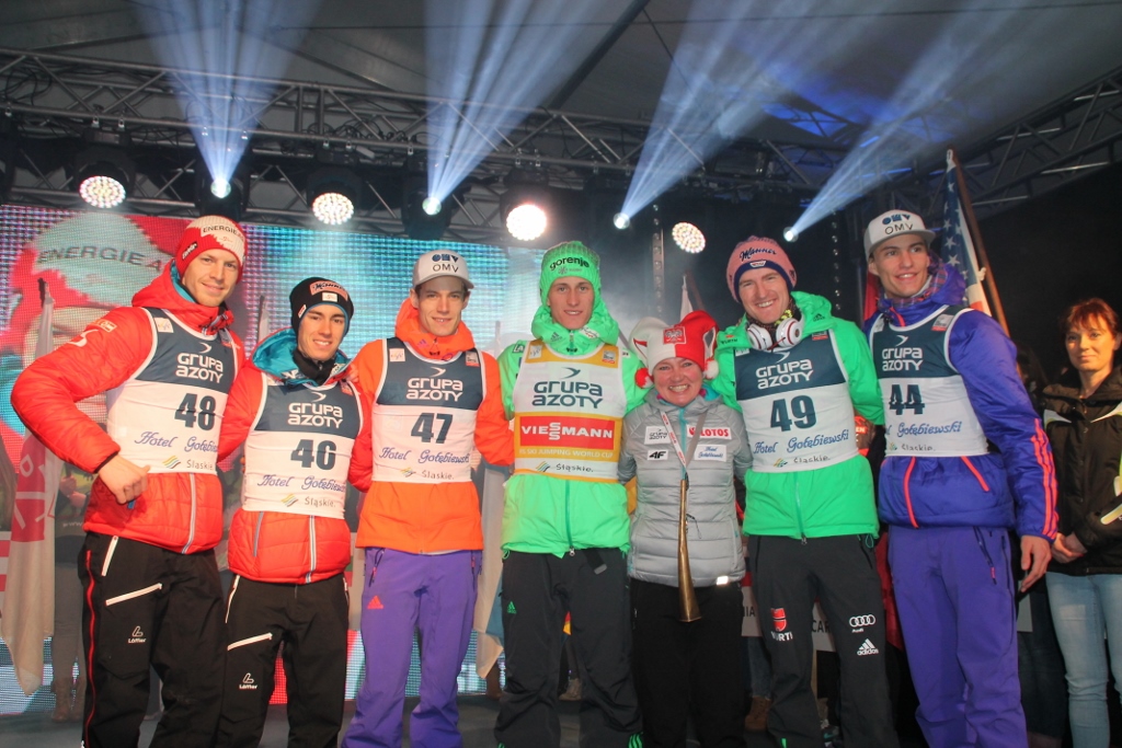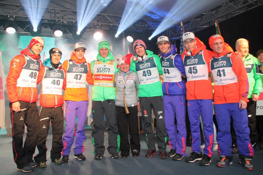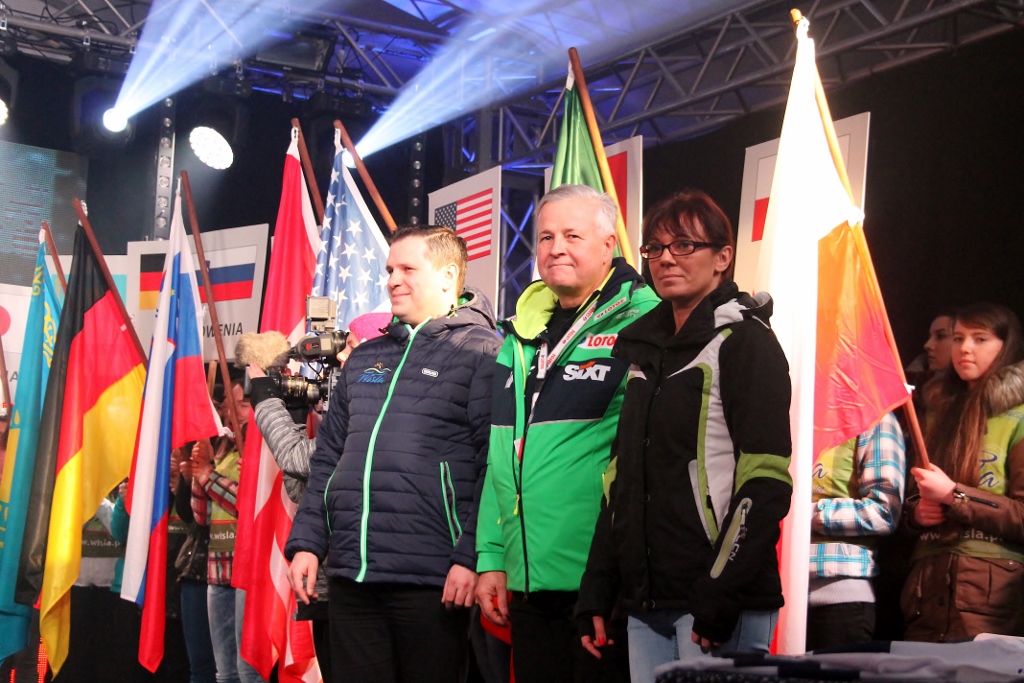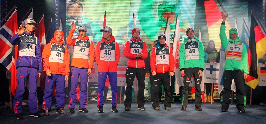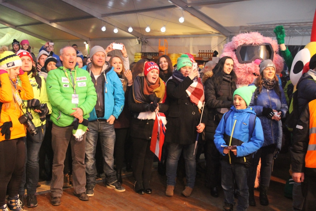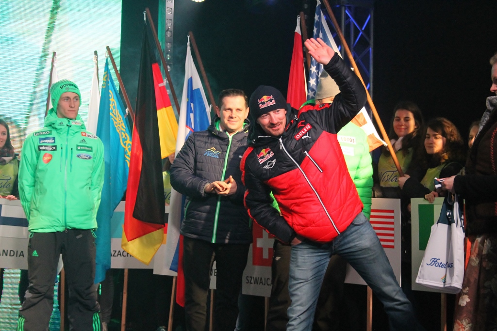 - Kamil w kwalifikacjach był drugi, Piotrek był czwarty. Trzymajcie za nich kciuki – zachęcał kibiców najlepszy w historii polski skoczek narciarski. Małysz przywitał jeszcze krótko zgromadzonych na scenie zawodników. - Mamy już tutaj lidera, bo wiemy doskonale, że Peter Prevc wygrał Puchar Świata na sześć konkursów przed zakończeniem sezonu. Są tutaj najlepsi. Cieszymy się bardzo, że przyjechali do Wisły, że chcieli nas odwiedzić i wziąć udział w Pucharze Świata.