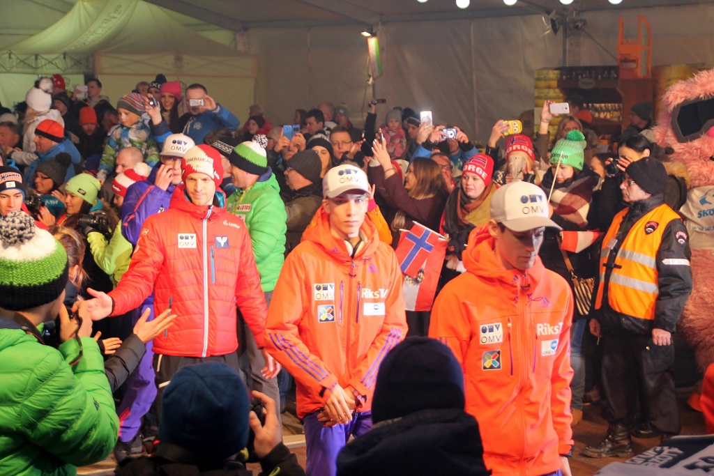 Po krótkich przemówieniach nastąpiła najważniejsza część wieczoru – wręczenie numerów startowych. Kibice wraz z konferansjerem Krzysztofem Głombowiczem wykrzykiwali kolejno nazwiska zawodników. Żółtą koszulkę lidera Peter Prevc otrzymał z rąk samego Adama Małysza, który również pojawił się na ceremonii.