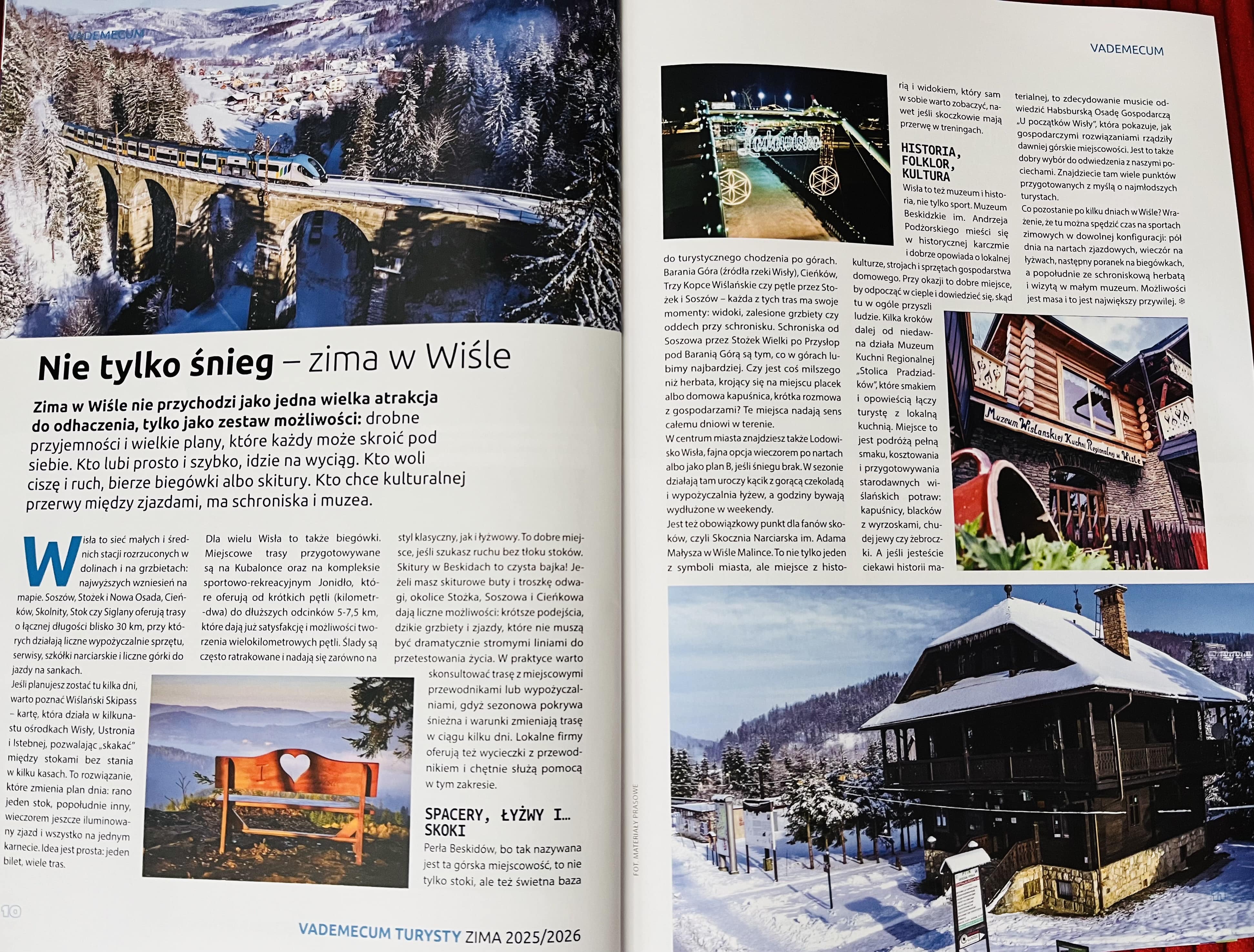 O Wiśle pojawił się także artykuł w specjalnym wydaniu Rynku Turystycznego - Vedemecum turysty (poradnik dla wymagających turystów zima 25/26). Magazyn był promowany na Międzynarodowych Targach Turystycznych ITTF Warsaw 2025 w miniony weekend, gdzie wszyscy odwiedzający mogli bezpłatnie zabrać egzemplarz.
