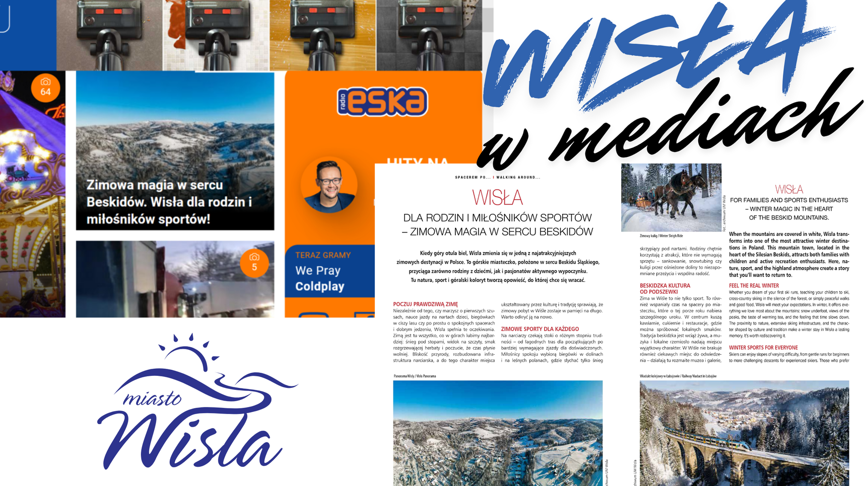 Miasto Wisła promuje zimową ofertę turystyczną w ciekawych kanałach medialnych. Najnowsze artykuły pojawiły się w ostatnim czasie m.in. na portalu www.slaskie.eska.pl oraz w Magazyn Świat Podróże Kultura – ZIMA 2025/26, jak również w specjalnym wydaniu Rynku Turystycznego - Vedemecum turysty.