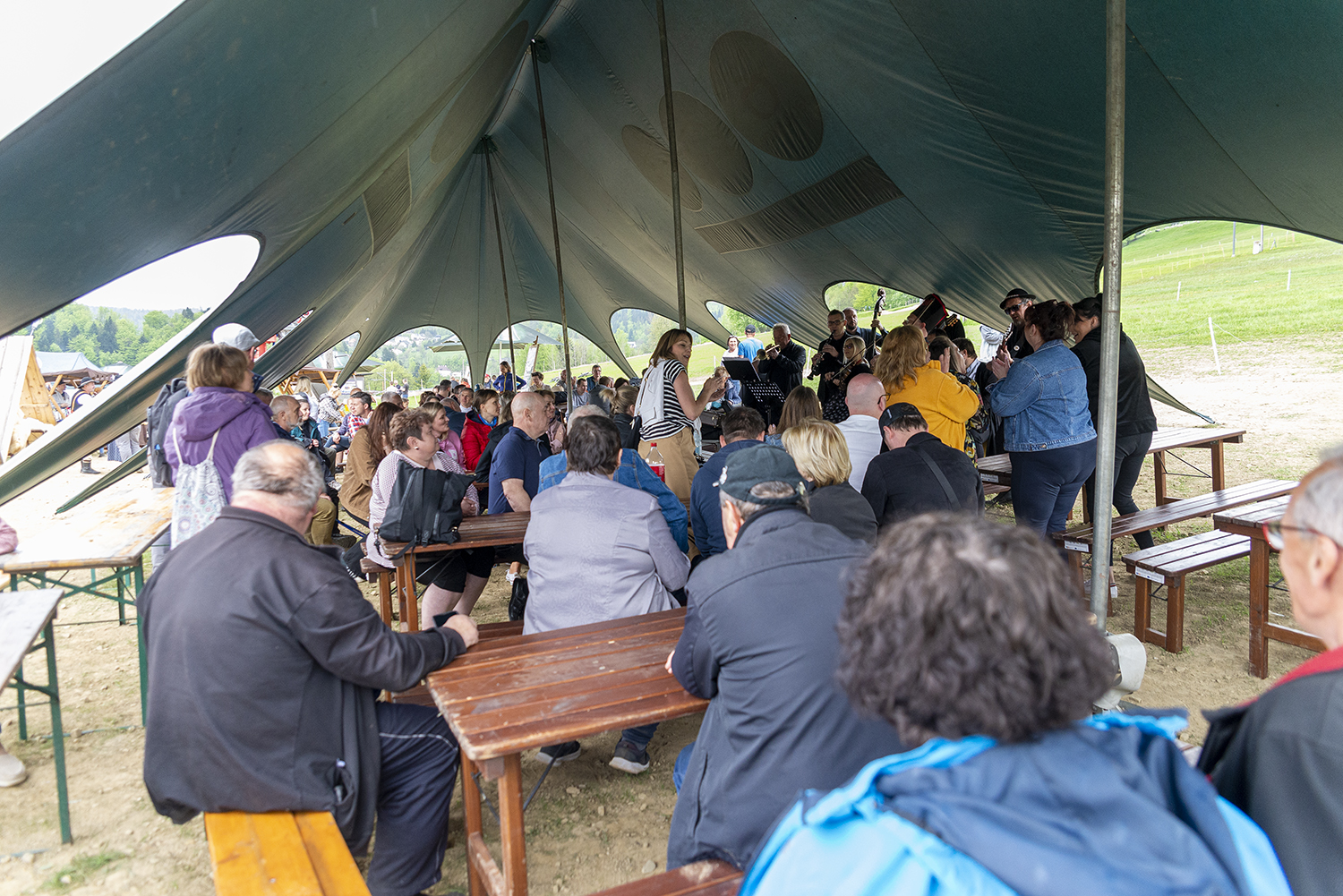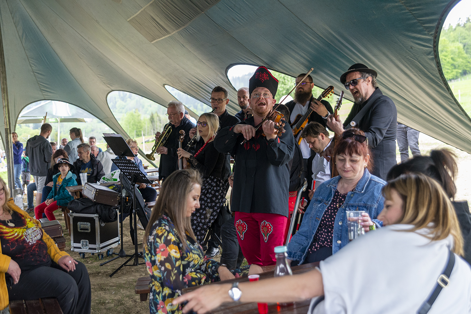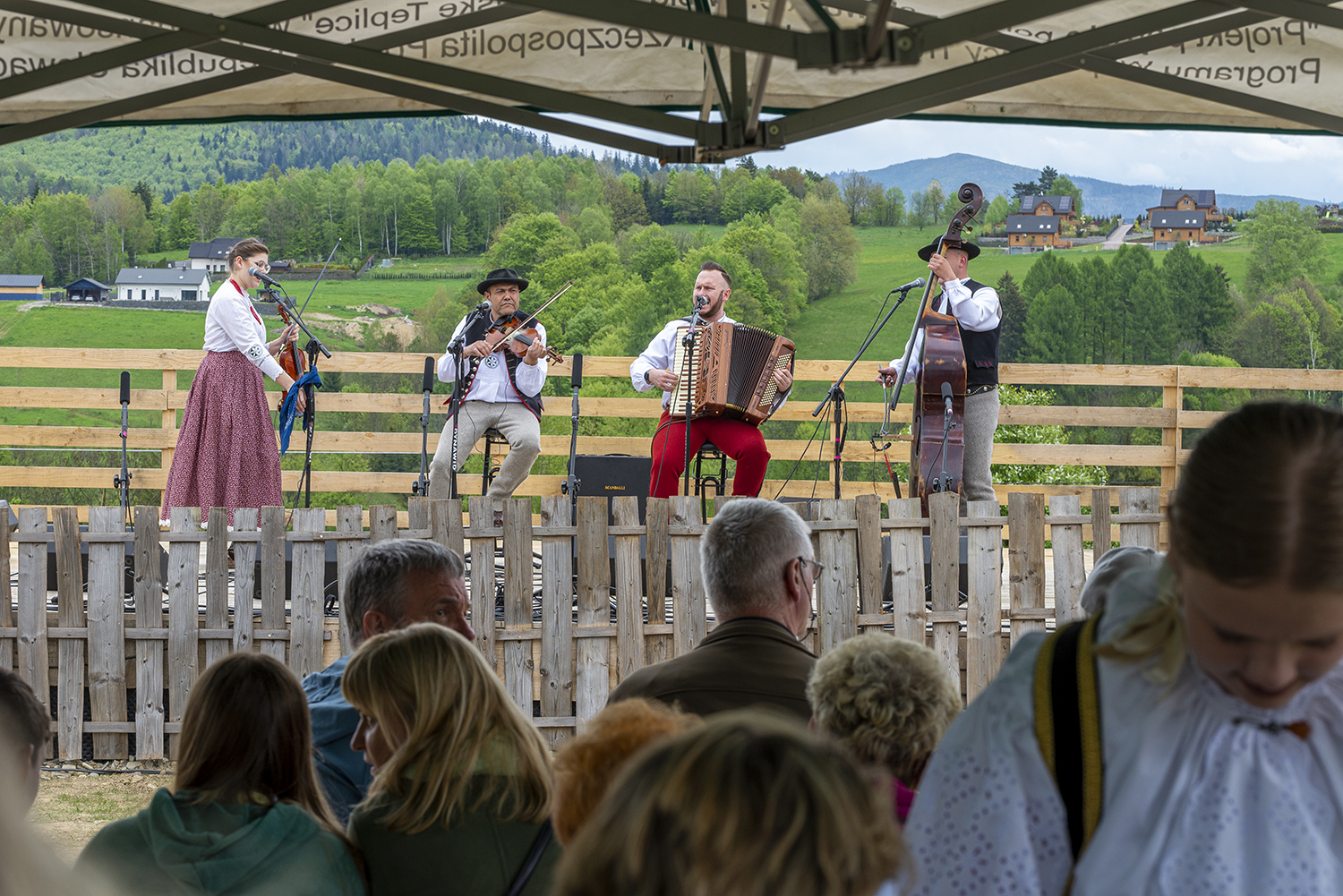 Po występach tanecznych na scenie pojawiły się Kapela Wisła, Kapela Beskidzcy Zbóje i Kapela Janicek. Ta ostatnia z powodu opadów deszczu podjęła odważną decyzję o przeniesieniu się pod namiot, w którym siedzieli uczestnicy i w bardzo bliskim kontakcie dali popis swoich umiejętności muzycznych i biesiadnych. W dobrej zabawie nie przeszkodził nawet deszcz, który na szczęście pojawił się na samym końcu imprezy.