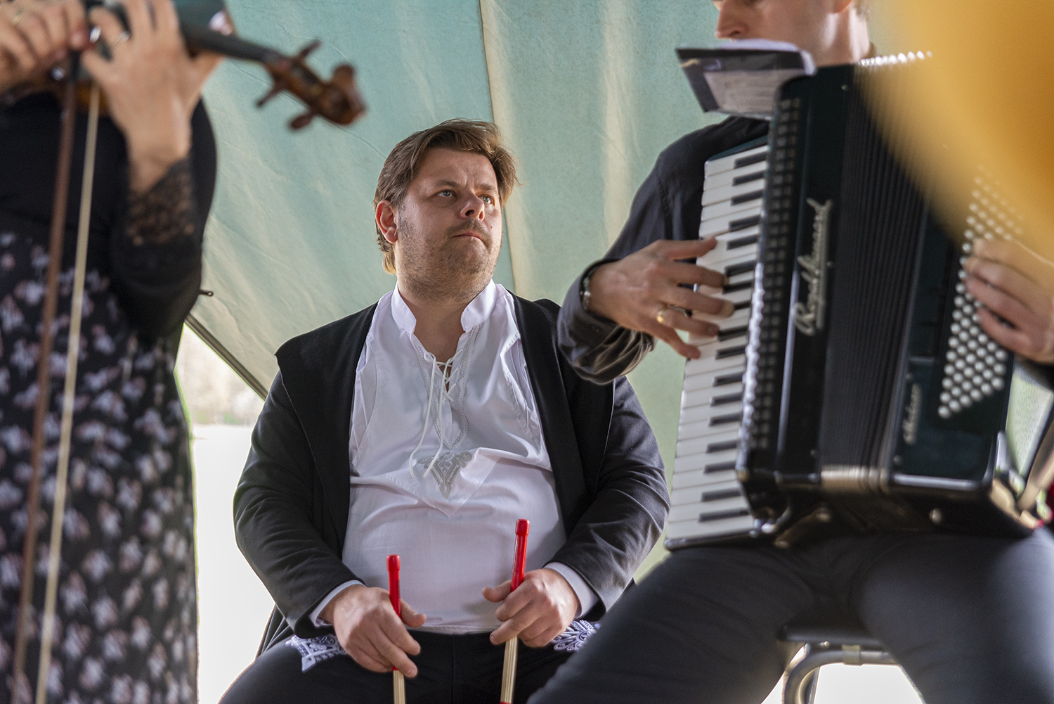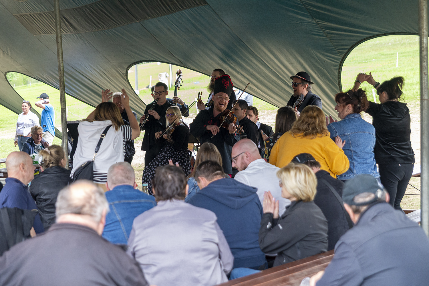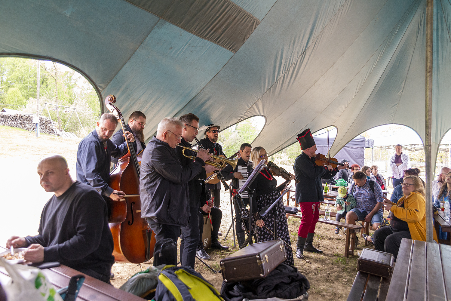 Po występach tanecznych na scenie pojawiły się Kapela Wisła, Kapela Beskidzcy Zbóje i Kapela Janicek. Ta ostatnia z powodu opadów deszczu podjęła odważną decyzję o przeniesieniu się pod namiot, w którym siedzieli uczestnicy i w bardzo bliskim kontakcie dali popis swoich umiejętności muzycznych i biesiadnych. W dobrej zabawie nie przeszkodził nawet deszcz, który na szczęście pojawił się na samym końcu imprezy.