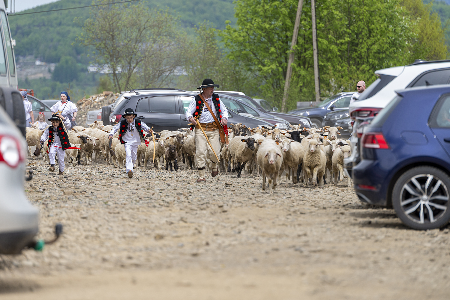 Po dźwiękach trombit, które rozległy się po wiślańskich gróniach i pięknym śpiewie dziewcząt z Regionalnego Zespołu Pieśni i Tańca "Wisła" gospodarze Barbara i Jan Kędzior z dziećmi i wnukami wyprowadzili stado owiec na łąkę. Cały pokaz okraszony był opowieścią zaprzyjaźnionego owczarza z Nydku dr Michała Milerskiego, który wytłumaczył skąd taka tradycja się wzięła i dlaczego jest taka ważna. Słowo Boże natomiast przytoczył i poprowadził wspólną modlitwę za udany sezon pasterski Jerzy Kędzior wiceprezes Oddziału Górali Śląskich. Następnie odbył się pokaz zaganiania owiec przez psy pasterskie, które poprowadziła Pani Nina Kwiatkiewicz wypasająca owce w Parku Karkonowskim i zajmująca się szkoleniem psów pasterskich.