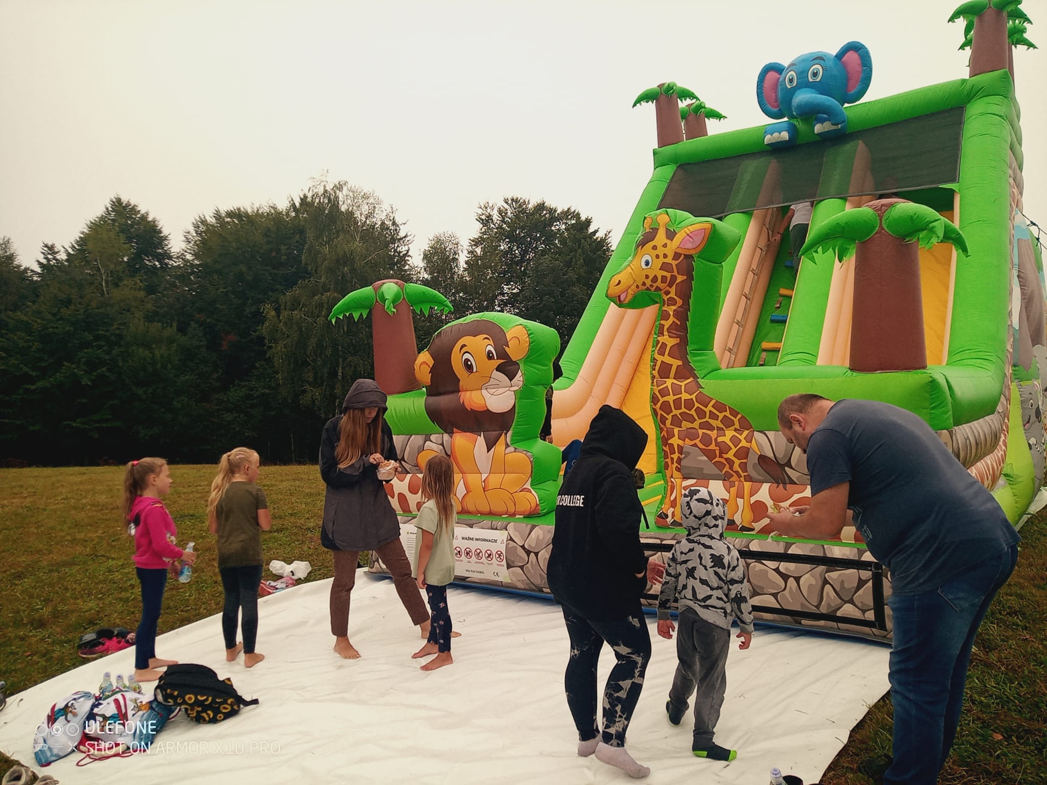 Rodzinny piknik ponownie zintegrował uczestników, pogłębił relacje, a przede wszystkim dostarczył mnóstwa radości. Jazda na dmuchańcu dostarczyła emocji porównywalnych z letnim kuligiem na wozach konnych!