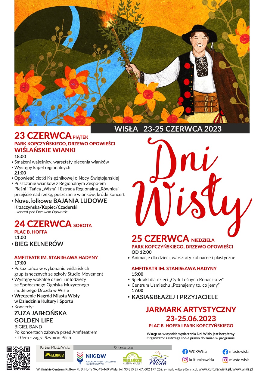 W piątek 23 czerwca wypada noc świętojańska, czyli tradycyjne wiślańskie wianki, z całą swoją obrzędowością. Wydarzenie odbędzie się w parku Kopczyńskiego a w programie nie zabraknie występów kapel góralskich, wspólnego plecenia wianków i smażenia „wajeśnicy”. Kulminacja nastąpi około godziny 21:00, kiedy to w asyście muzyki i śpiewu lokalnych zespołów regionalnych uczestnicy przejdą nad brzegi Wisły, by tam wianki wypuścić na wodę. Zwieńczeniem będzie koncert pod drzewem opowieści projektu Nove.folkowe Bajania Ludowe.