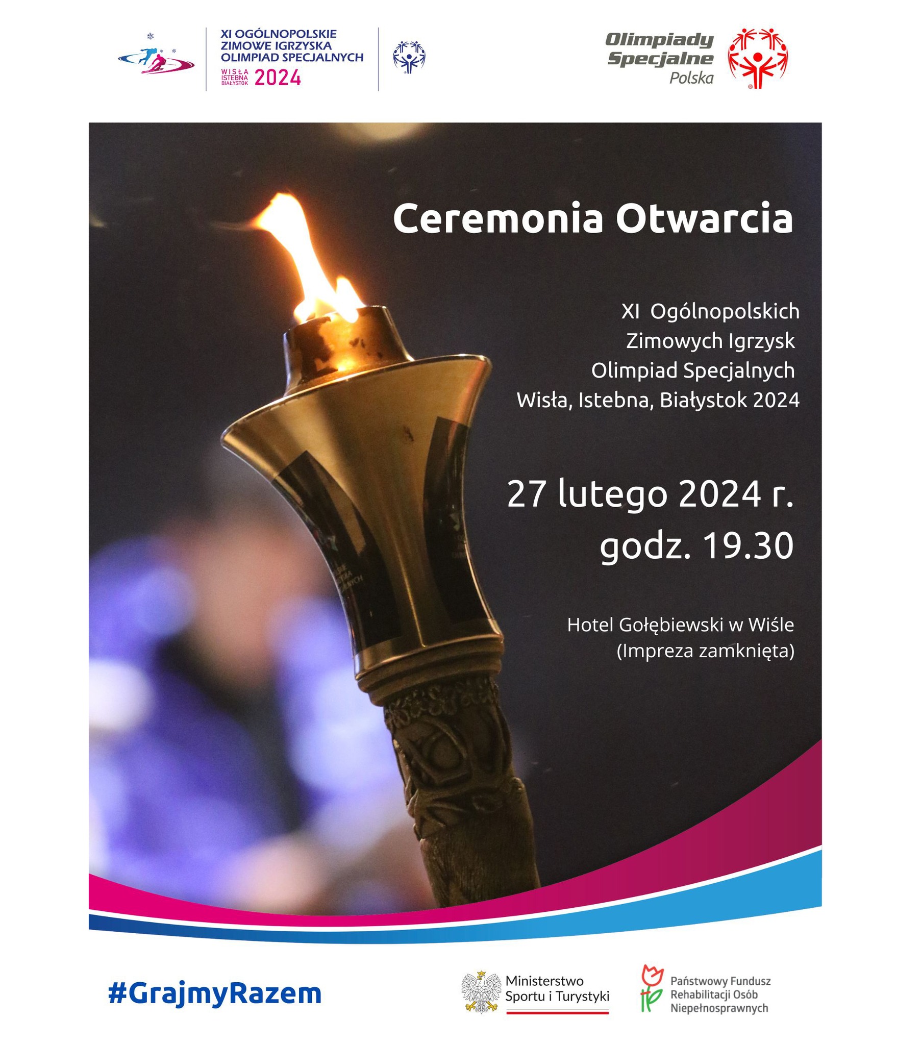 19:30 – 21:00 Ceremonia Otwarcia Igrzysk - Hotel Gołębiewski w Wiśle